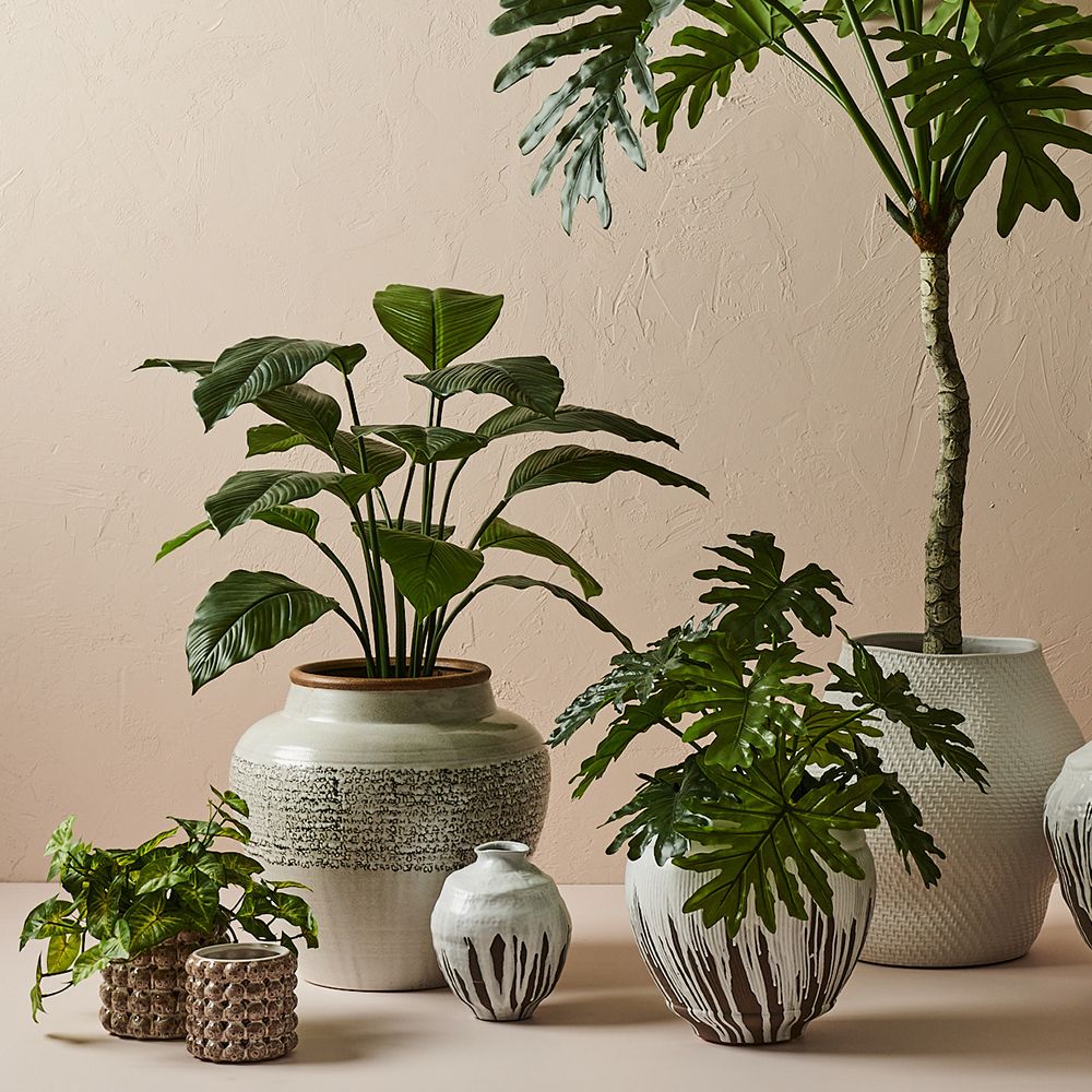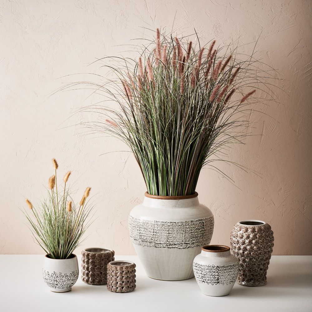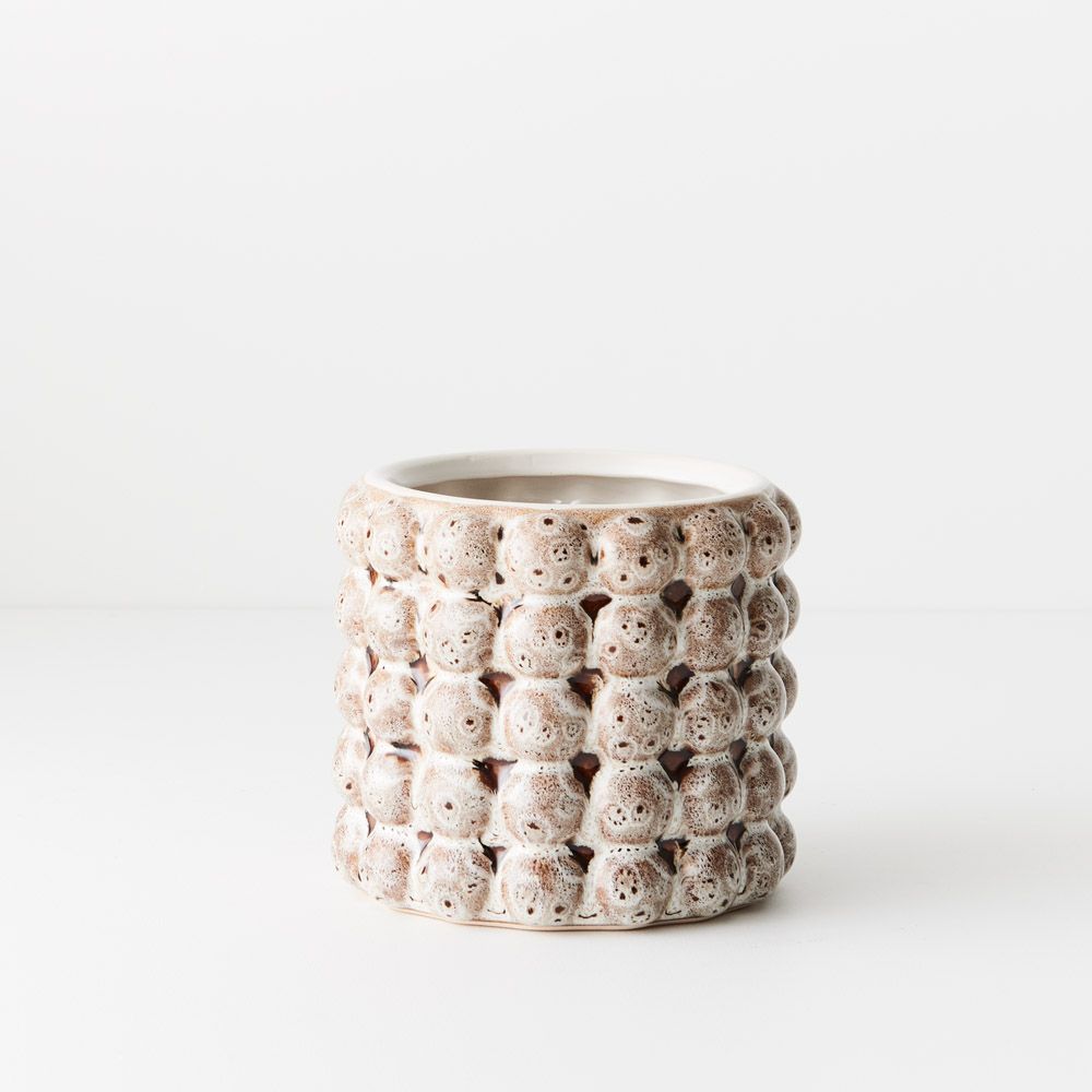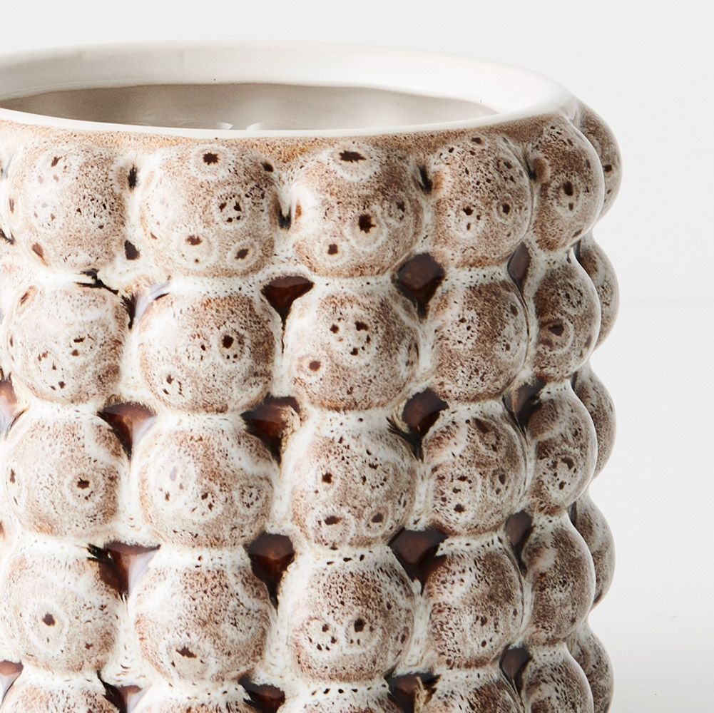The Pot Croco stands out with its unusual textured ball-like finish and distinctive glaze in Latte. Its wide opening offers versatility for various plants and arrangements. This unique pot adds a touch of character and style to any space, becoming a standout piece in your decor collection.