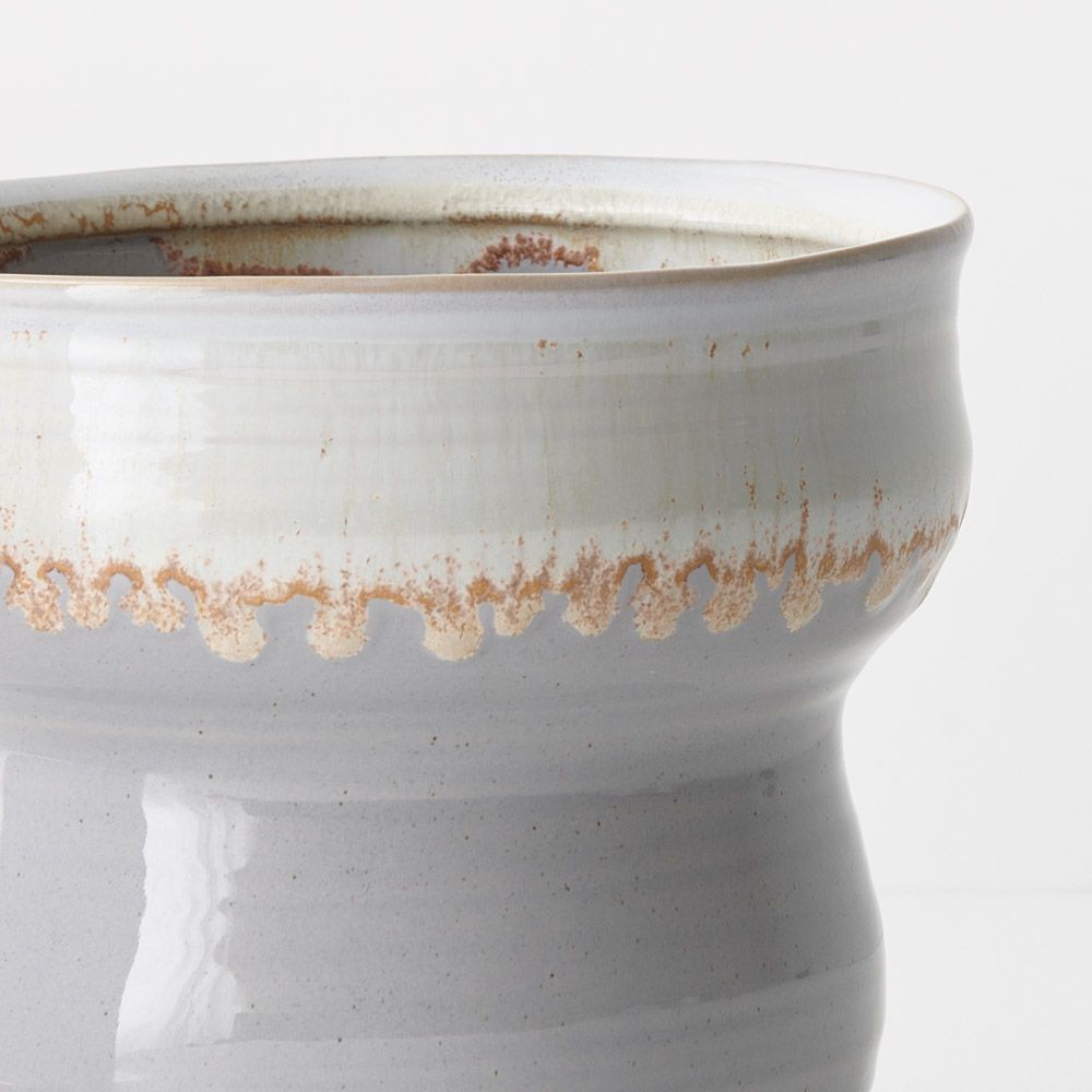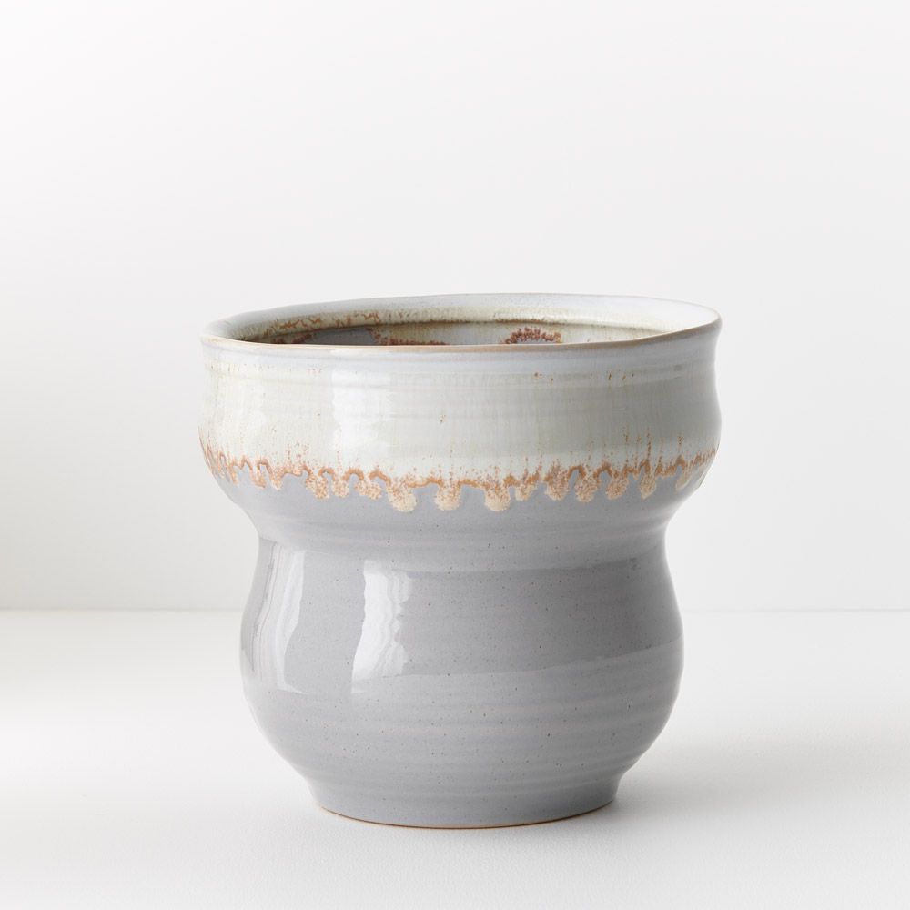 The Jesse Pot exhibits a charming blend of white and sky-blue hues seamlessly merging into a delightful, glazed finish. Ideal for small plants and arrangements, its unique design adds a touch of elegance to any space, making it a perfect choice for both botanical displays and decorative accents.