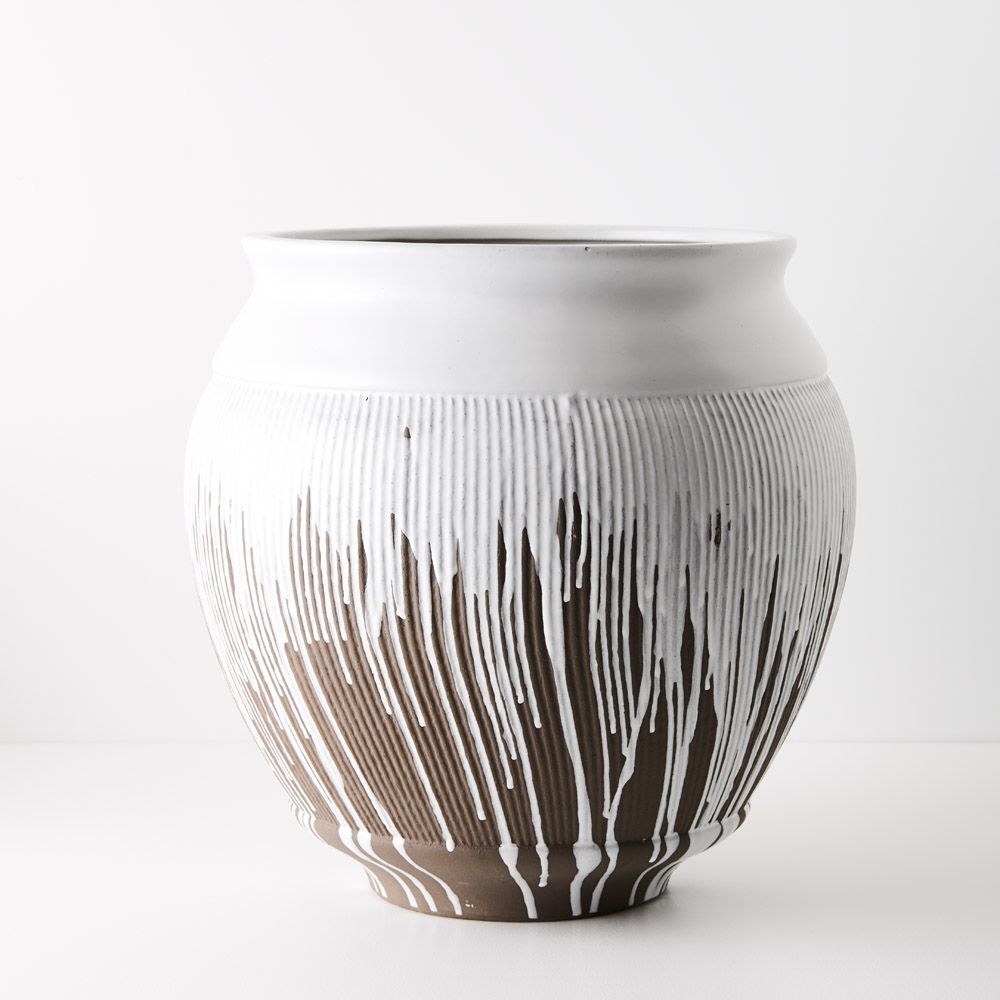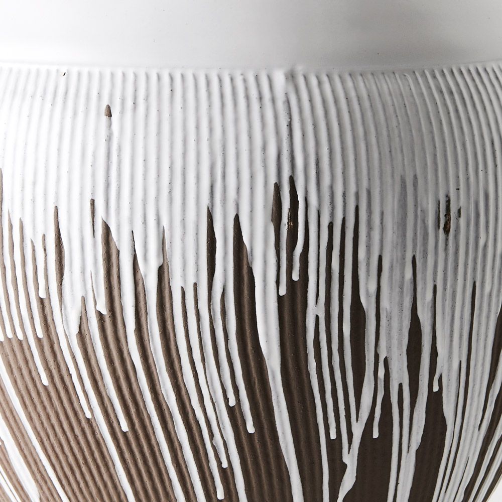 Introducing the largest Pot from the Piedada collection, a striking brown pot adorned with captivating white paint drips flowing from the opening down to the base. This distinctive design adds a touch of artistic flair to any space, making it a standout piece for showcasing plants or as a decorative accent. Embrace the unique fusion of colour and texture with Pot Piedada, an eye-catching addition to your home decor.
