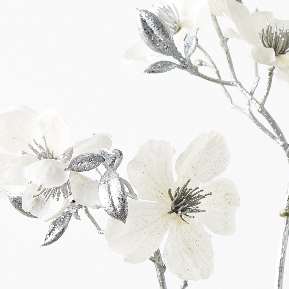 Introducing our Metallic Blossom Spray, marrying delicate blooms with a modern twist. Each flower adorned with metallic finishes, this spray is a harmonious blend of nature's charm and contemporary elegance, adding a touch of sophistication to your festivities.