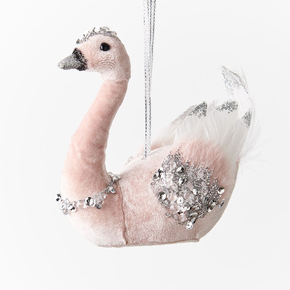 Embrace the holiday elegance with our plush Pink Swan Christmas Ornament. This charming adornment brings a touch of whimsy and sophistication to your festive decor.