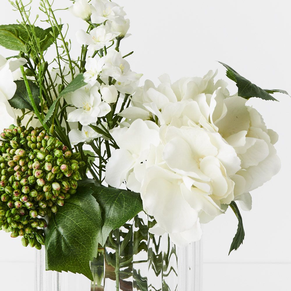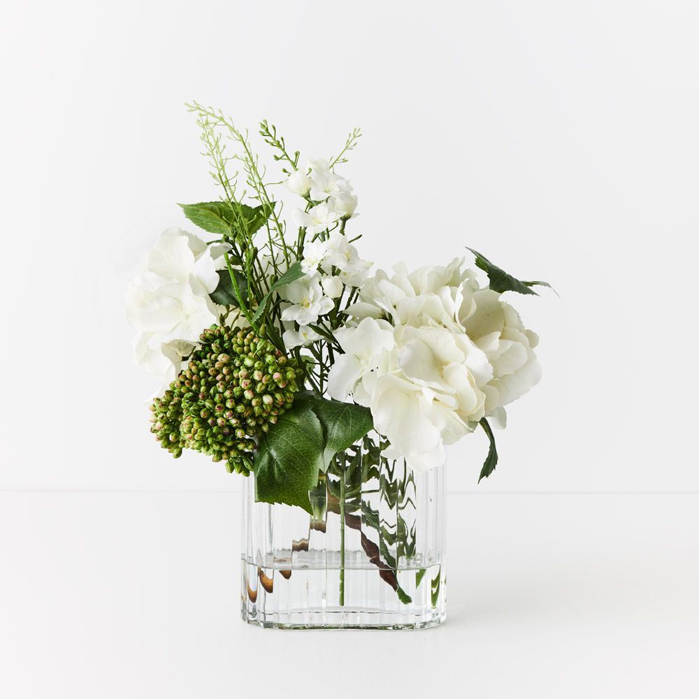 Adorn your space with the exquisite beauty of our Hydrangea Larkspur Mix in Vase, nestled within an oval-shaped glass ripple vase. This stunning arrangement blends lush hydrangeas and delicate larkspur to create a captivating centrepiece that will elevate any decor with elegance and grace.