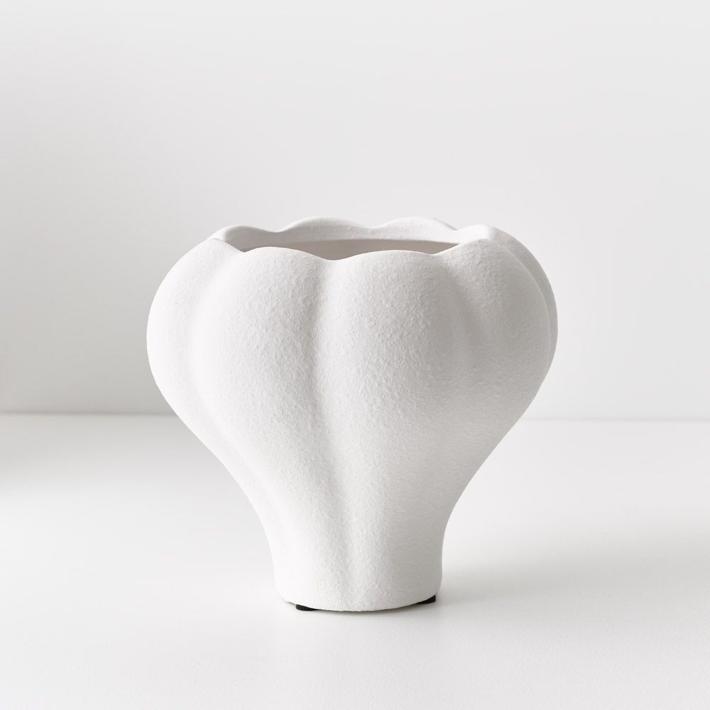 Aura is a beautifully crafted ceramic pot characterised by its pristine white hue and captivating textured surface. Its design features a wide, inviting opening that gracefully narrows to a slender base, creating an elegant silhouette. Perfect for floral arrangements and using as a stand-alone piece. Aura adds a touch of sophistication and charm to any setting, highlighting the natural beauty of your favourite blooms. Note: These decorative vases do not come with a guarantee they will hold water.