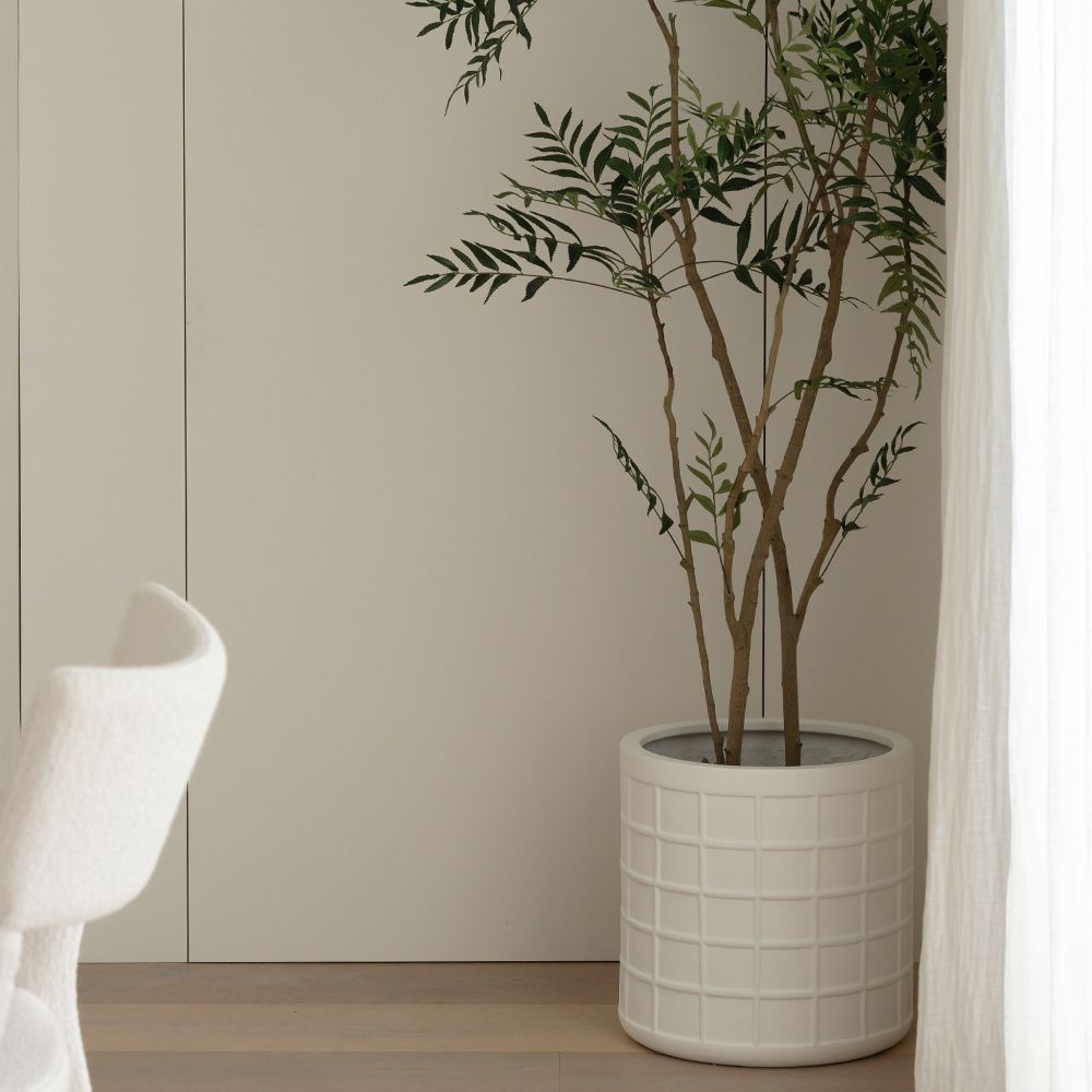 Introducing our Jardin Pots (set of 2) in crisp white, featuring a distinctive waffle-like pattern. Perfect for both larger indoor and outdoor plants, these pots add a touch of contemporary style to any space. These pots have drainage holes and are a lightweight polystone.