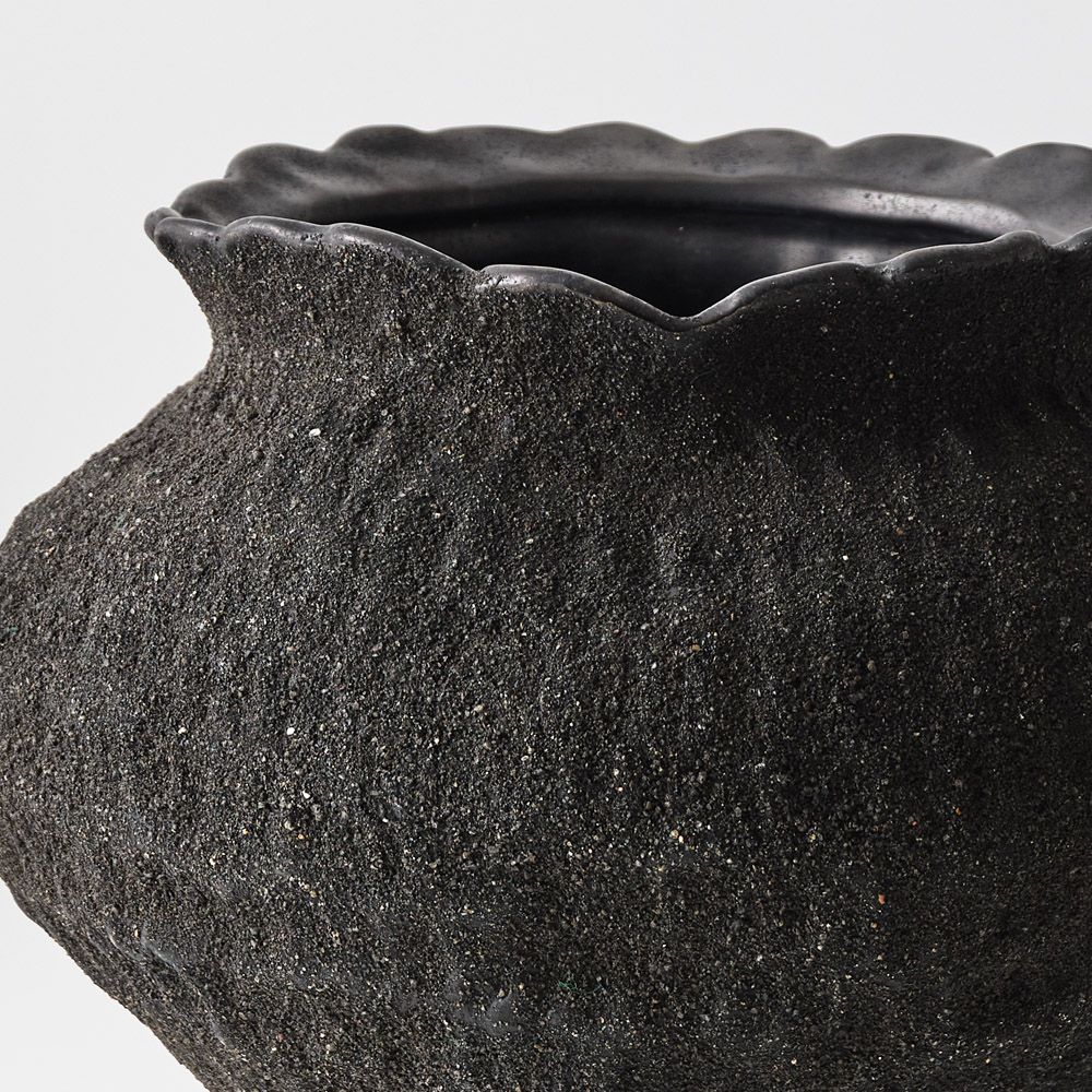 Vase Lexi is a textured ceramic piece with an organic, rounder shape, featuring small indentations that add unique character. Handmade and with a wide opening, it's perfect for decorative use or for showcasing a small floral arrangement, or plant.