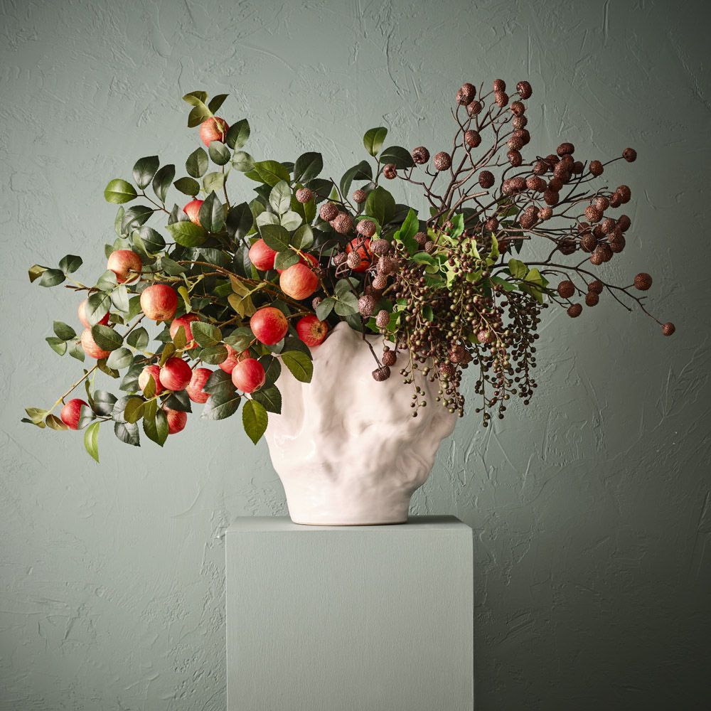 Our Red Apple Spray makes a a delightful and realistic addition to your floral arrangements. This artificial spray features lifelike red apples nestled among green leaves, meticulously crafted to capture the vibrant colour and natural texture of real apples. Perfect for adding a touch of rustic charm and seasonal flair to your space.