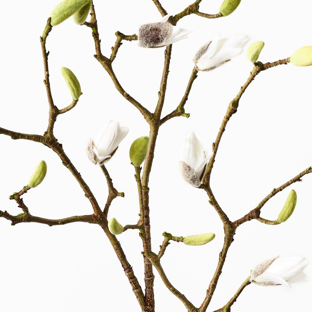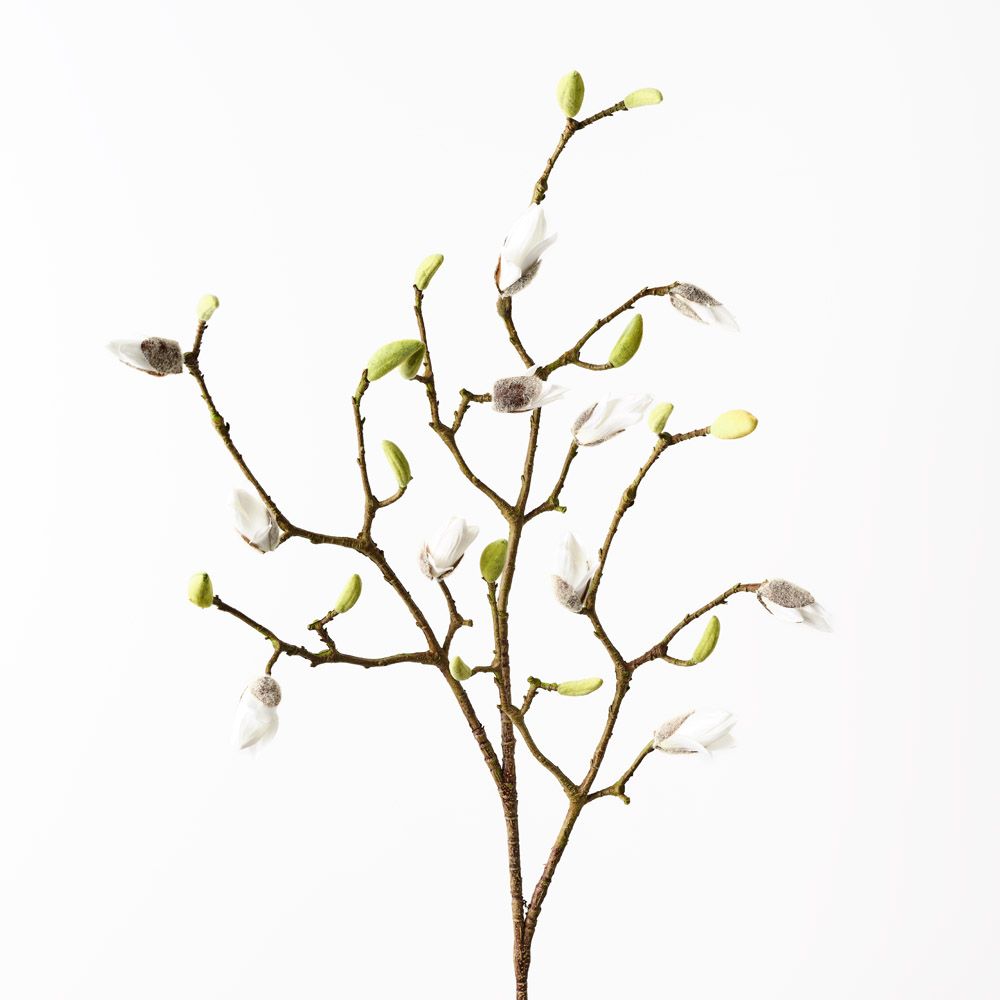 Introducing the Magnolia Bud Spray, showcasing elegant magnolia buds without flowers. This botanical stem captures the simple beauty of magnolia buds, perfect for adding a subtle yet sophisticated touch to floral arrangements or decorative displays.