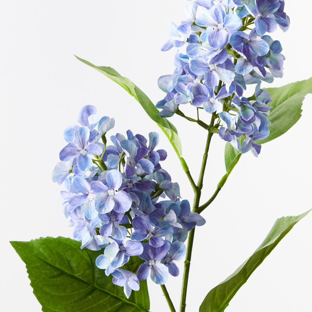Introducing our Hydrangea Cone Spray in serene blue hues, a graceful and enchanting addition to any floral arrangement or decor. This artificial spray features two cone-shaped hydrangea blooms in shades ranging from soft sky blue to deep cerulean, capturing the essence of natural hydrangeas.