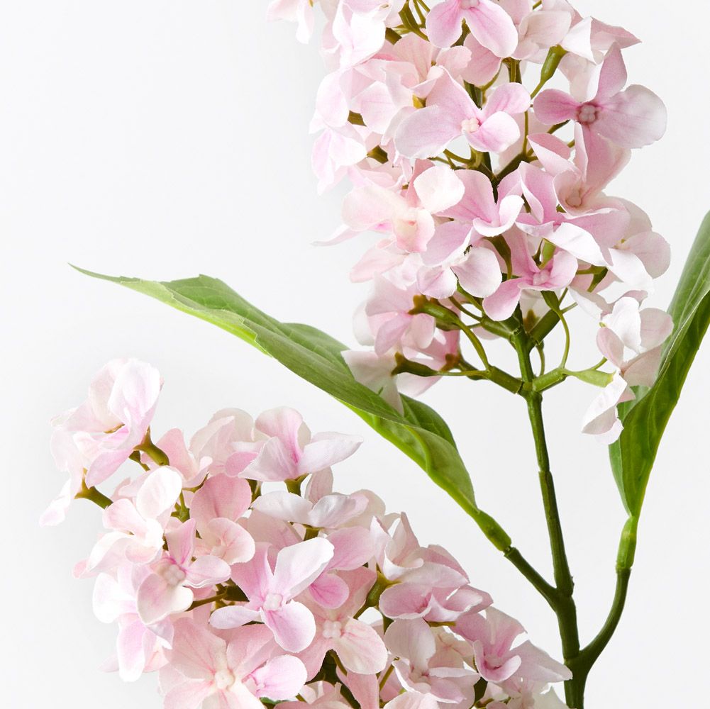 Introducing our Hydrangea Cone Spray in delicate light pink tones, a graceful and enchanting addition to any floral arrangement or decor. This artificial spray features two cone-shaped hydrangea blooms capturing the essence of natural likeness to real hydrangeas.