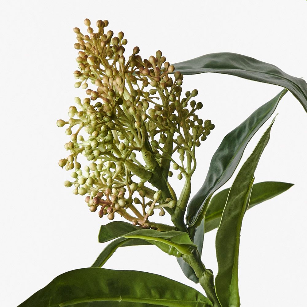 Introducing our Skimmia Spray in rich green and brown tones, a versatile and natural addition to any decor. This artificial spray features clusters of lifelike Skimmia buds and leaves, with vibrant green foliage accented by earthy brown hues. Expertly crafted to capture the authentic texture and detail of real Skimmia, this spray adds a touch of organic elegance to your home or event. Whether used alone or as part of a larger arrangement, it brings a warm, natural charm and maintenance-free beauty to any setting.