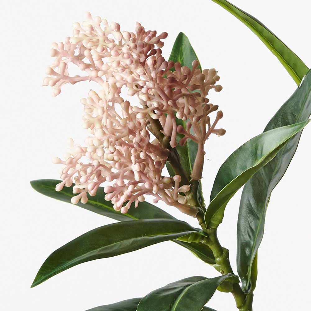 Introducing our Skimmia Spray in delicate light pink tones, a versatile and natural addition to any decor. This artificial spray features clusters of lifelike Skimmia buds and leaves, with vibrant green foliage accented by earthy brown hues. Expertly crafted to capture the authentic texture and detail of real Skimmia, this spray adds a touch of organic elegance to your home or event. Whether used alone or as part of a larger arrangement, it brings a warm, natural charm and maintenance-free beauty to any setting.
