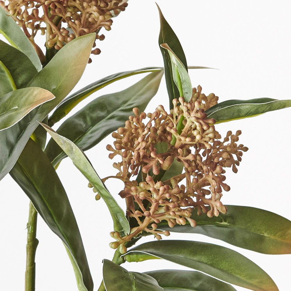 Introducing our Skimmia Spray in rich natural brown tones, a versatile and natural addition to any decor. This artificial spray features clusters of lifelike Skimmia buds and leaves, with vibrant green foliage accented by earthy brown hues. Expertly crafted to capture the authentic texture and detail of real Skimmia, this spray adds a touch of organic elegance to your home or event. Whether used alone or as part of a larger arrangement, it brings a warm, natural charm and maintenance-free beauty to any setting.