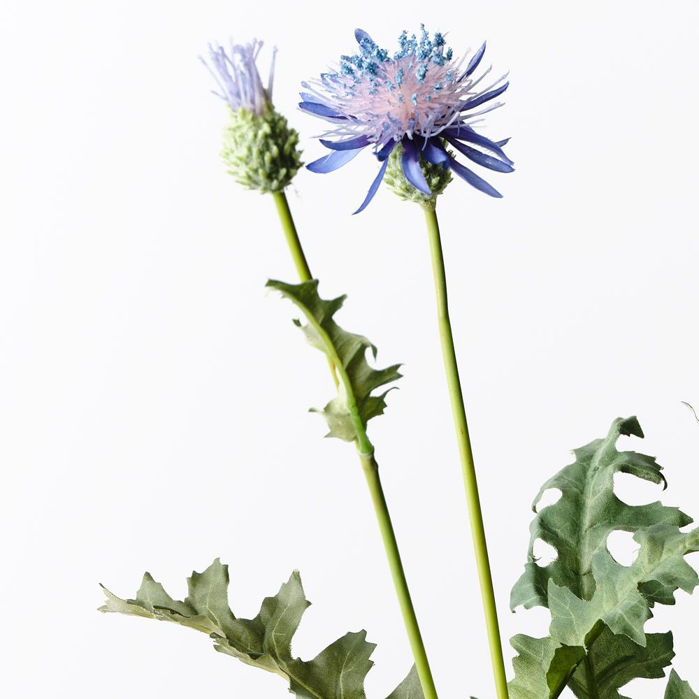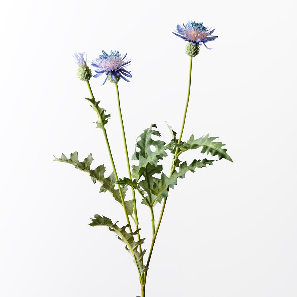 Introducing the Thistle Spray, featuring delicate indigo blooms that capture the unique charm of thistle flowers. This botanical stem adds a touch of rustic elegance to floral arrangements or decorative displays, perfect for bringing a natural and distinctive beauty to any setting.