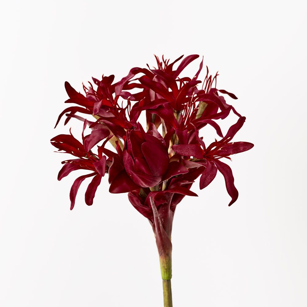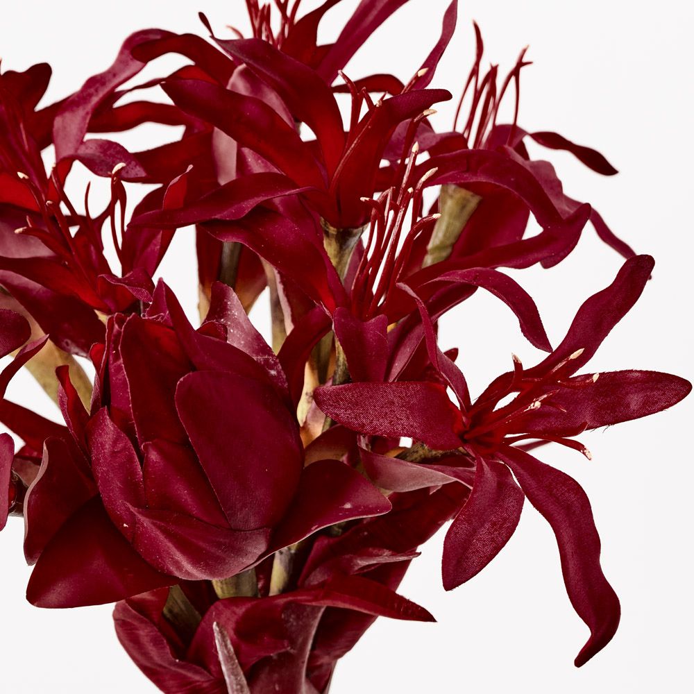 Introducing the Gymea Lily, a magnificent floral stem showcasing deep, vibrant red blooms. This striking flower is known for its tall, dramatic presence and rich colour, making it a standout addition. Perfect for creating a bold and elegant statement, the Gymea Lily in deep red brings a touch of exotic beauty and sophistication to your space. Its impressive design and vivid hue make it an ideal choice for those seeking to add a dramatic flair to their aesthetic.