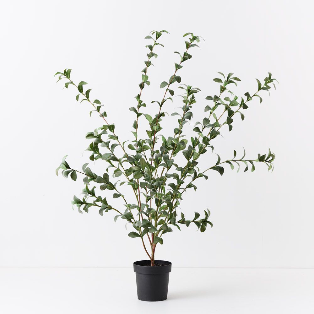 The Pittosporum Plant arrives in a sleek black plastic pot, offering the beauty of nature with minimal upkeep. Perfect for busy individuals, its artificial foliage requires little maintenance, providing everlasting greenery and ambiance without the hassle of watering or pruning.