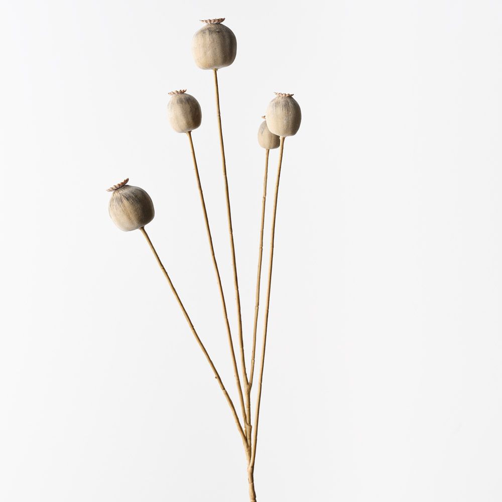 Our Poppy Pod Seed Spray features five lifelike seed pods in a natural sand color, capturing the rustic beauty and texture of real poppy pods. Perfect for adding a touch of earthy elegance to any arrangement or decor, these pods bring a unique, organic element to your space.