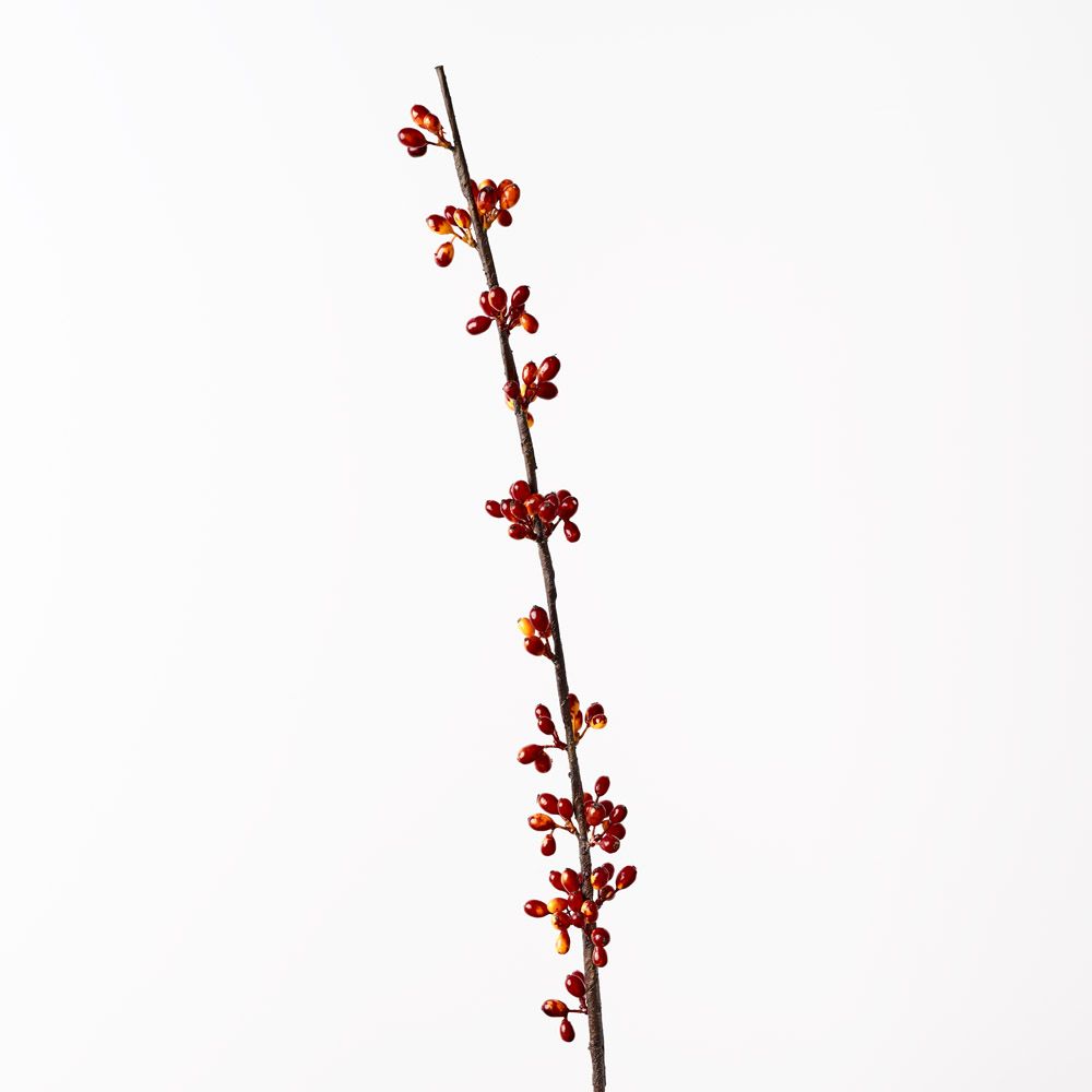 Introducing the Flame Red Coffee Bean Spray, featuring fiery red tones that bring a striking and vibrant presence to any space. This botanical stem adds a bold and energetic element to floral arrangements or decorative displays, ideal for creating a focal point with its dynamic colour and eye-catching appeal.