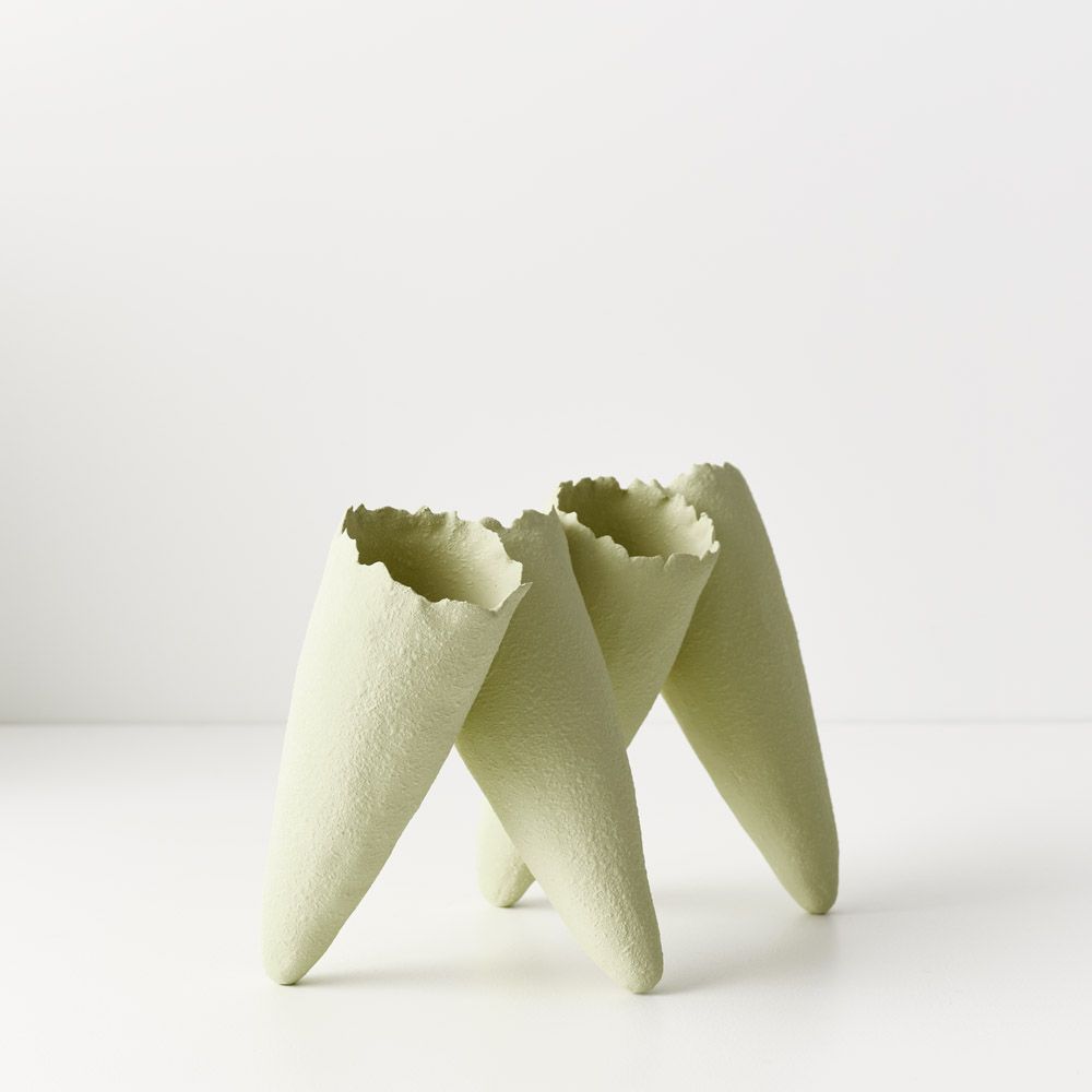 A collection of cone-shaped vases arranged alternately in direction, creating a standing line of vases that is both abstract and functional, ideal for showcasing stems in a unique display. Note: These decorative vases do not come with a guarantee they will hold water.