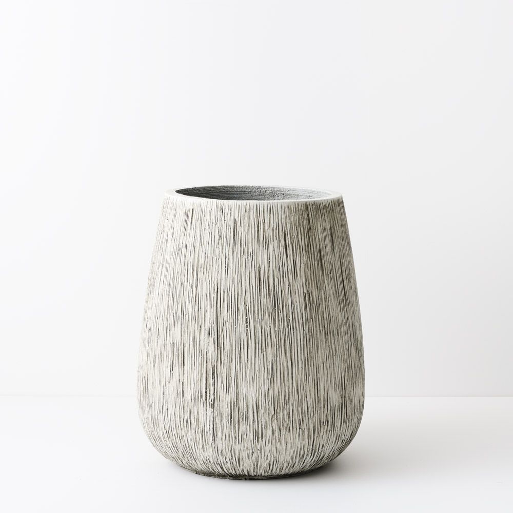 The Elias Pot boasts an impressive size and intricate pattern, making it ideal for outdoor use. Available in sizes that accommodate everything from small to large plants, it offers both functionality and visual appeal.