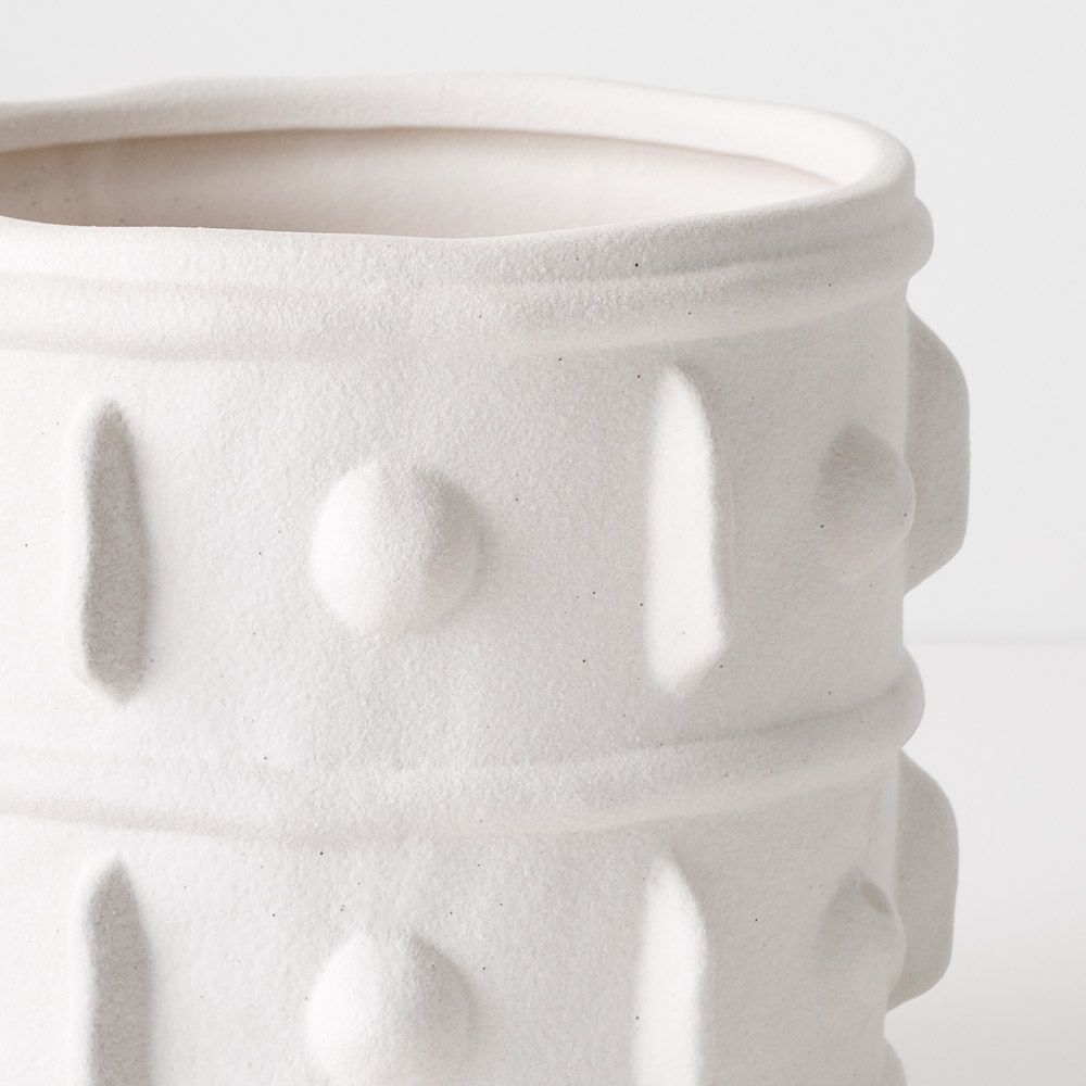 This geometric-shaped small pot in white offers a modern and minimalist aesthetic. Its clean lines and crisp finish make it a stylish choice for any decor, whether used as a standalone piece or for holding small plants.