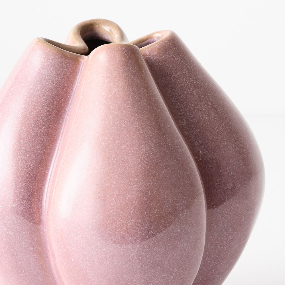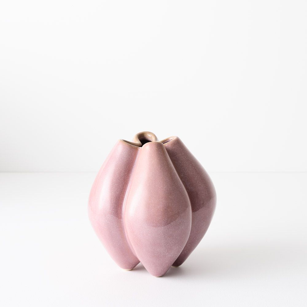 This four-chambered vase is hand-glazed and small in size, making it a versatile decorative piece. Perfect for displaying a few stems, it adds a unique and artistic touch to any space.