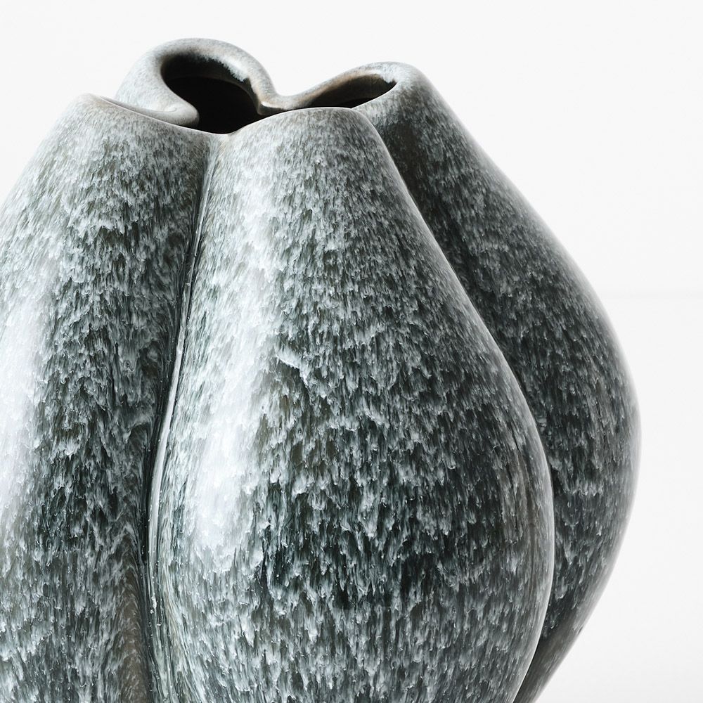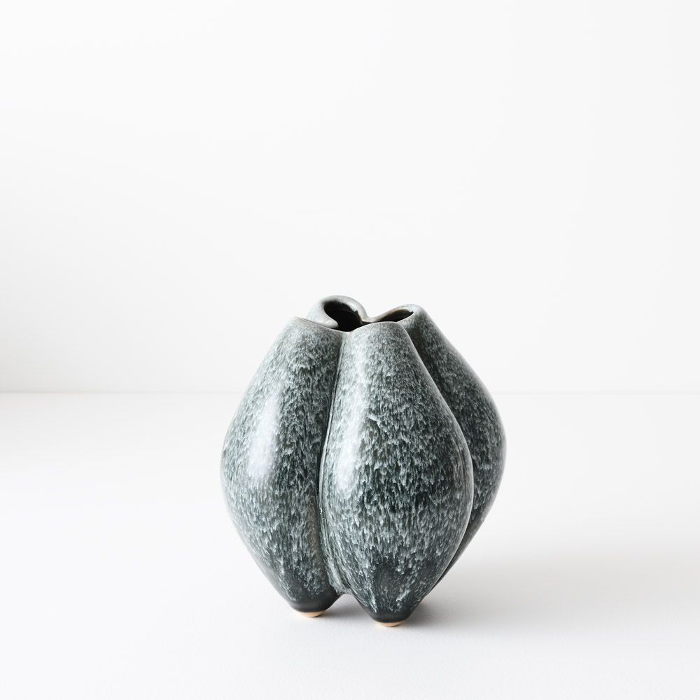 This four-chambered vase is hand-glazed and small in size, making it a versatile decorative piece. Perfect for displaying a few stems, it adds a unique and artistic touch to any space.