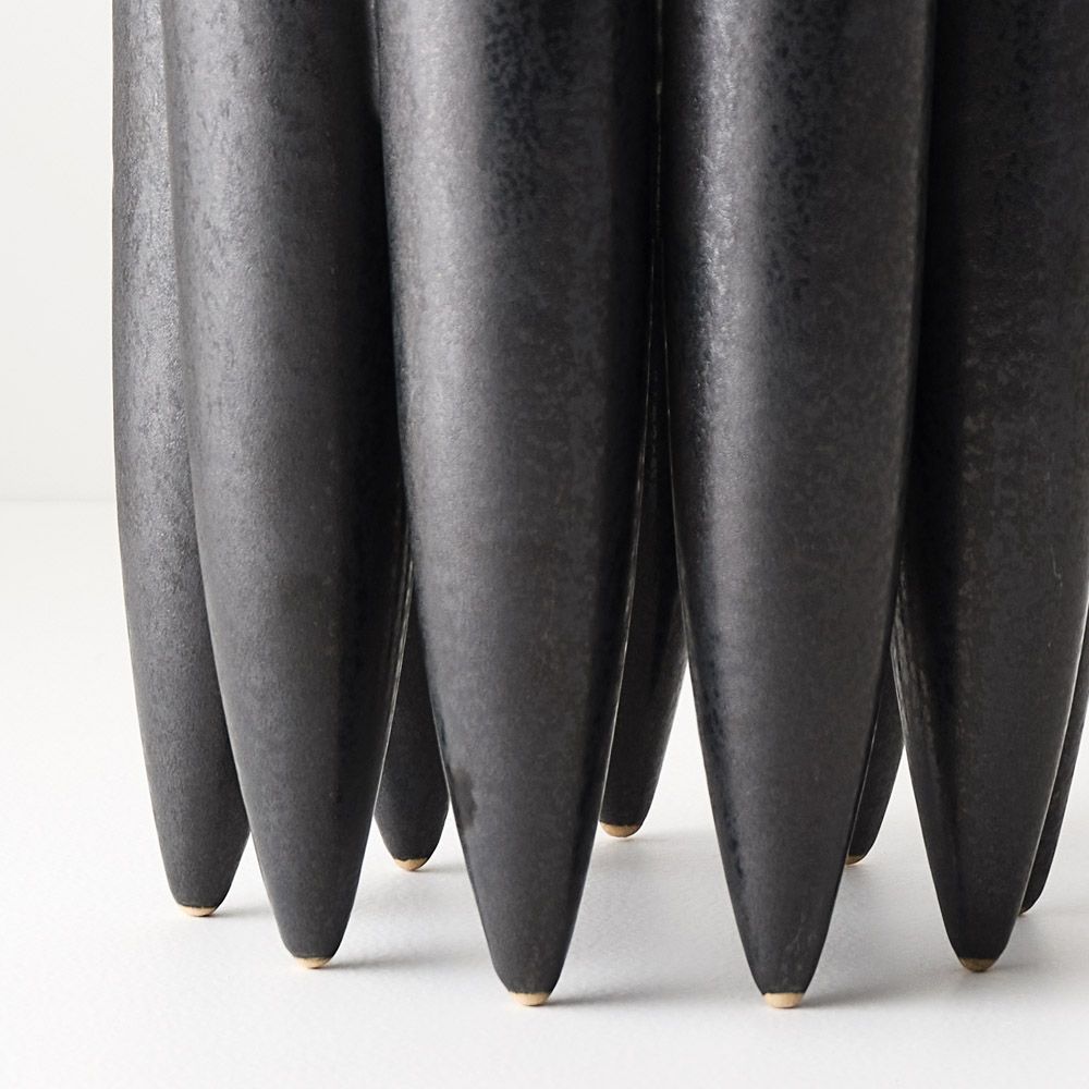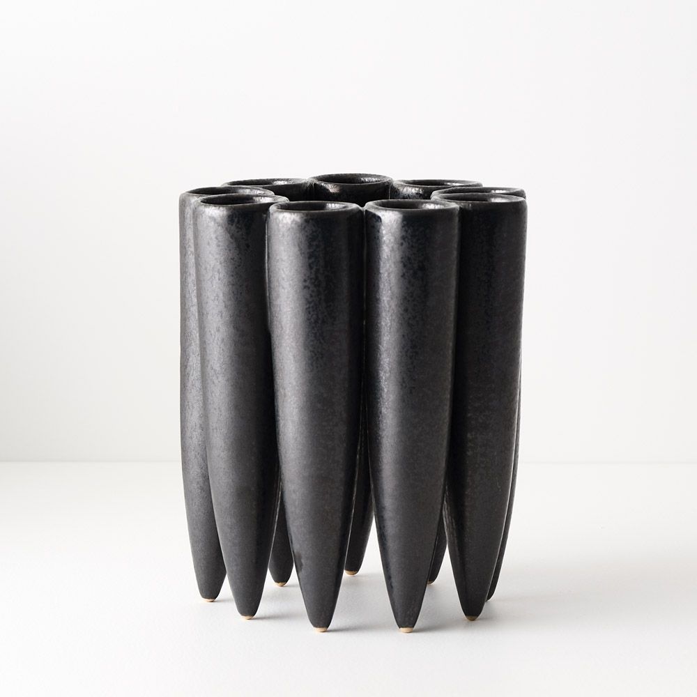 A group of upright cone-shaped vases with a wow-factor design. This glazed vase cluster is a bit of fun and has many ways to display flowers.