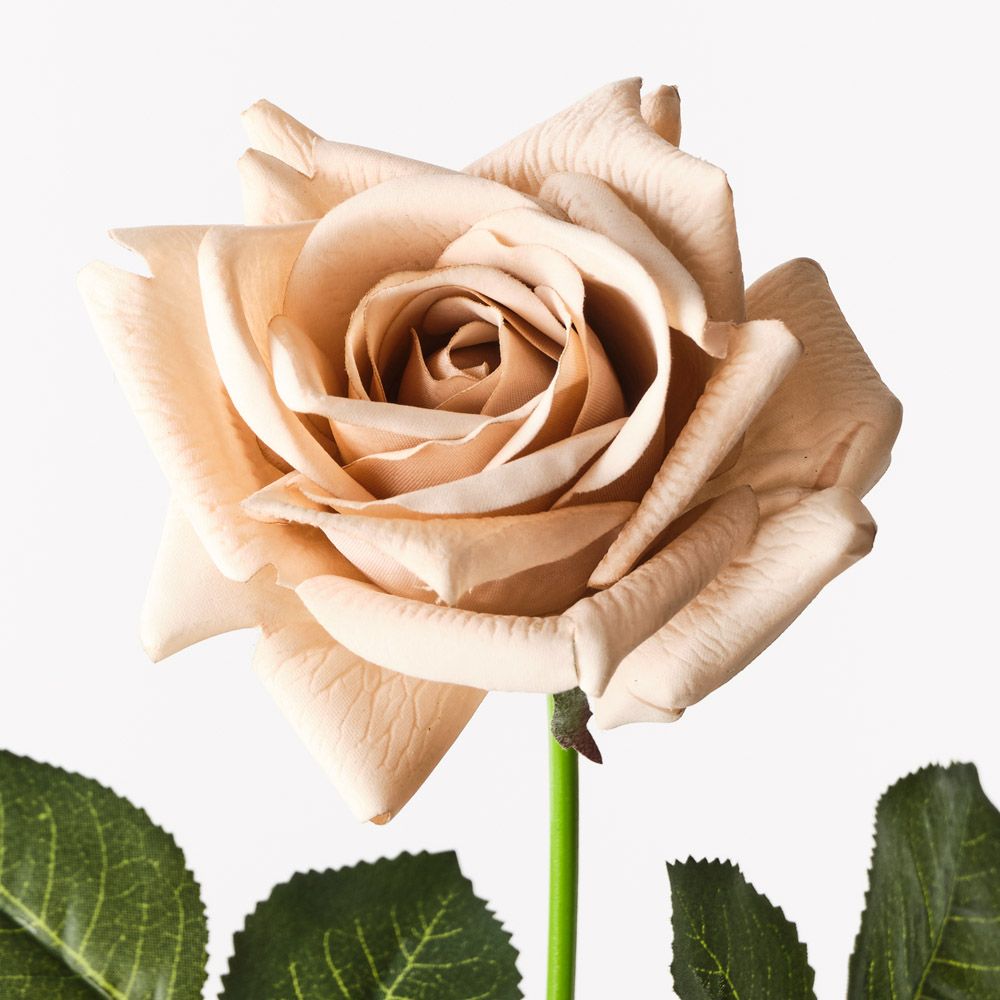 Introducing our artificial Kim Rose stem, featuring an elegantly open blossom surrounded by lush green foliage. This beautiful, lifelike rose showcases delicate petal layers. With its full, open head and sturdy stem, the Kim Rose is perfect for creating romantic bouquets or adding a classic floral accent to your decor that stays fresh and vibrant year-round.