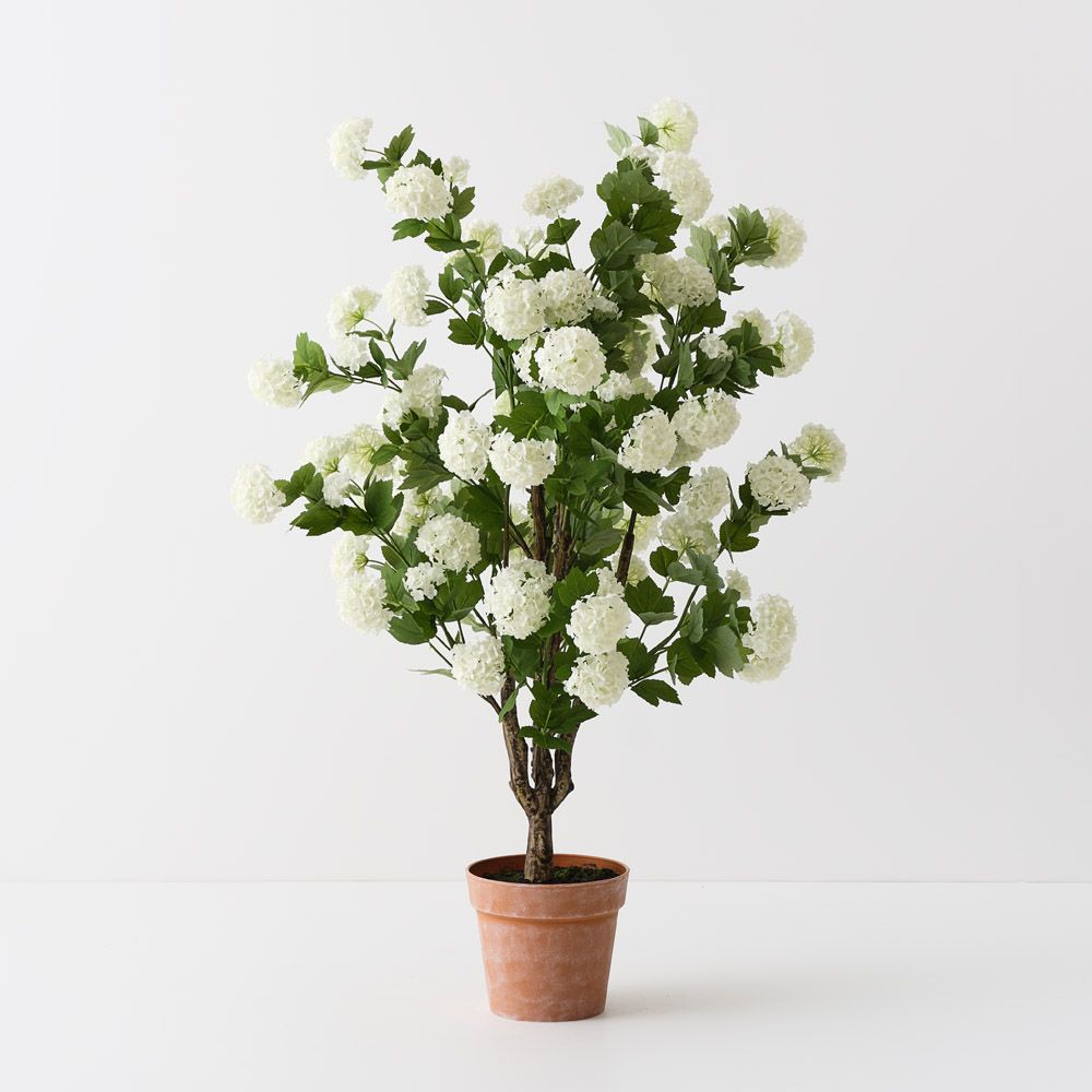 Add a touch of natural beauty with this Snowball Tree in a terracotta-look plastic pot. Its realistic design makes it a versatile piece for your space.