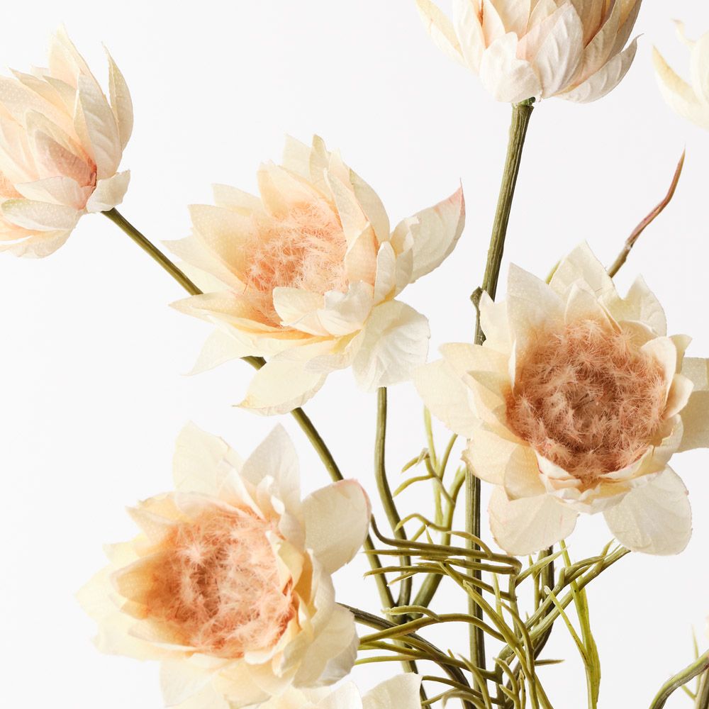 Add soft elegance to any arrangement with our Cream Blushing Bride Spray. This artificial stem captures the delicate charm of the Blushing Bride flower, featuring creamy petals with subtle blush tones and finely textured foliage.