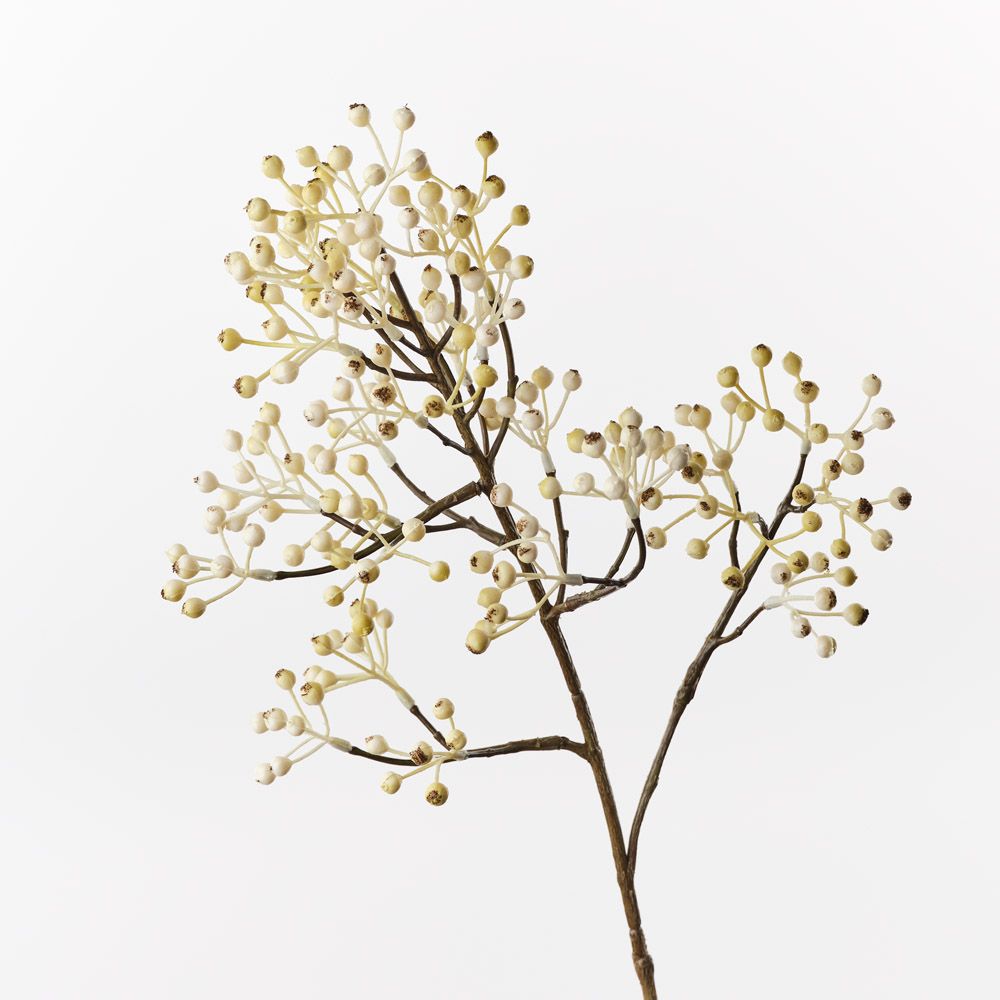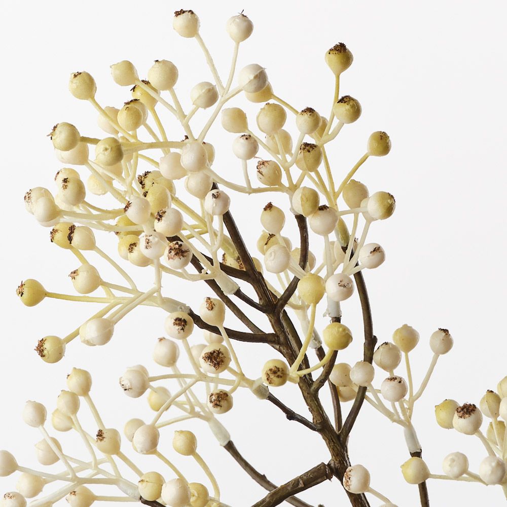 The white Berry Spray features numerous small, vibrant berries cascading along a longer stem. It’s realistic design and rich colour make it an excellent choice for adding texture and natural details to your arrangements.
