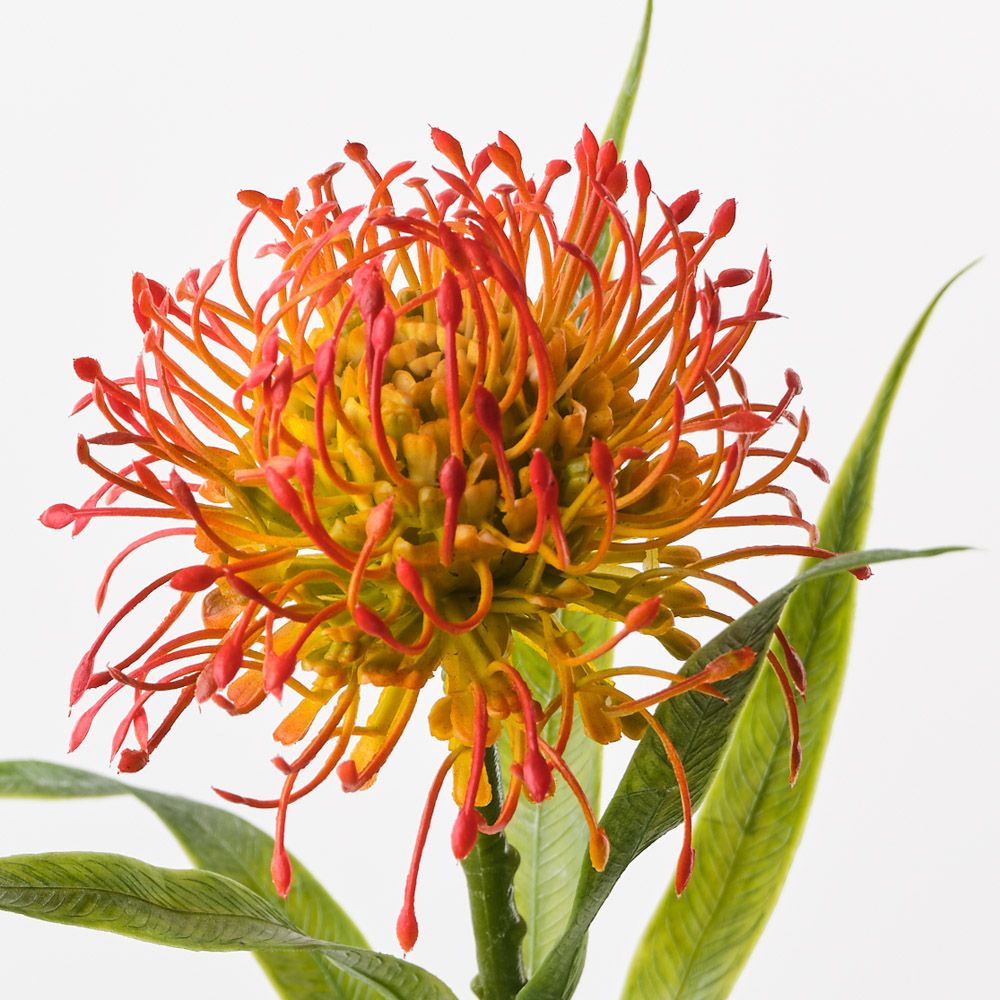 The Protea Leucospermum in orange features bold, spiky petals in vibrant hues, creating a striking, lifelike appearance. Its rich orange tones add warmth and energy, making it a standout piece that brings a touch of exotic beauty to any space.