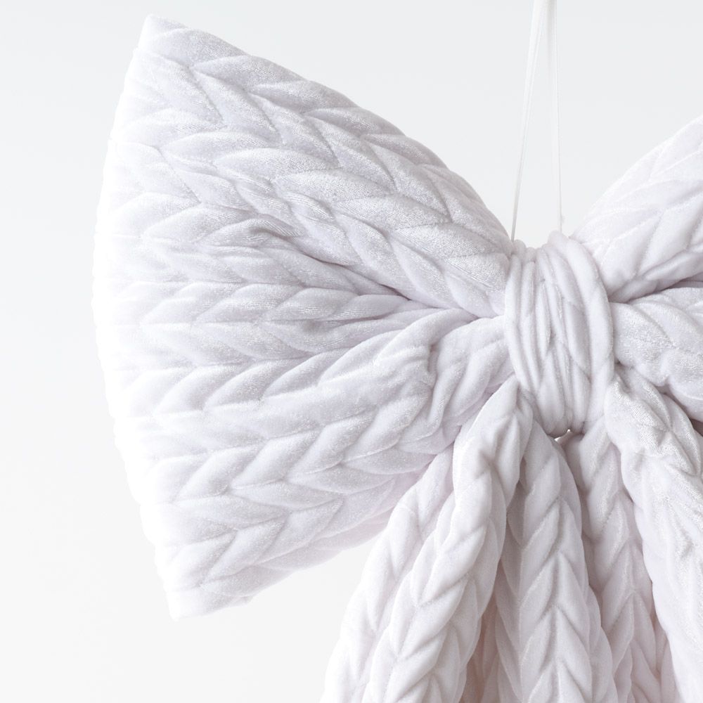 This classic white fabric hanging Christmas bow is perfect for door features, fireplace decorations, and other festive moments, adding a touch of holiday cheer to any space.