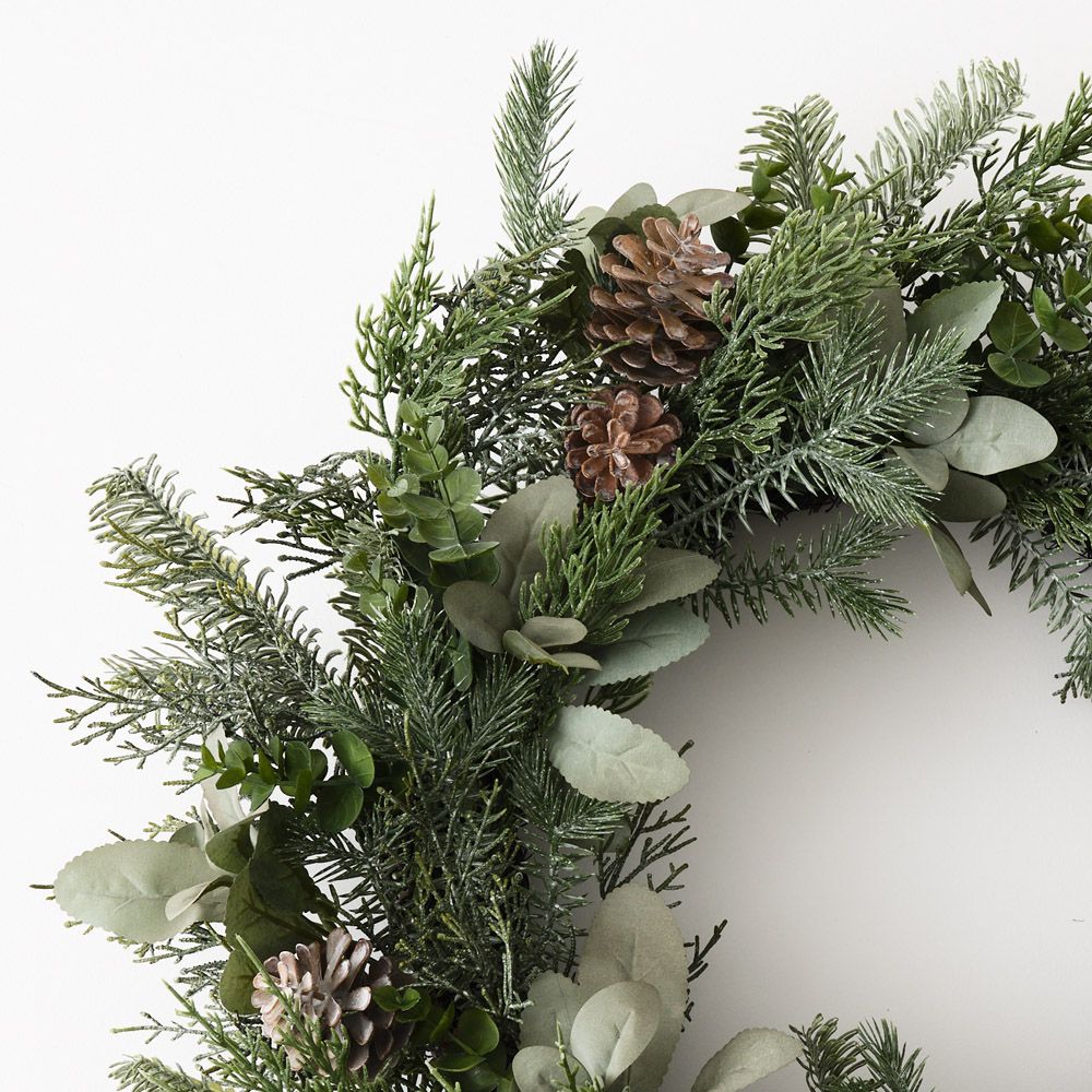 The Pinecone Mix Wreath is an impressive display of festive cones and a variety of lush foliage. This beautifully crafted wreath brings the spirit of Christmas to your home.