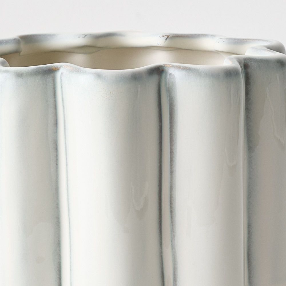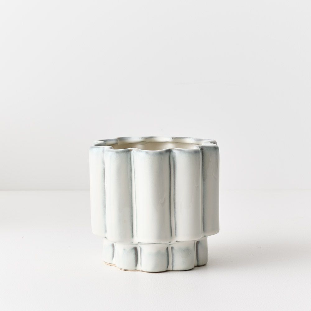 Elevate your space with this sculptural pot, featuring a textured, glazed finish and a bold, ribbed design. Perfect for adding character to any room.