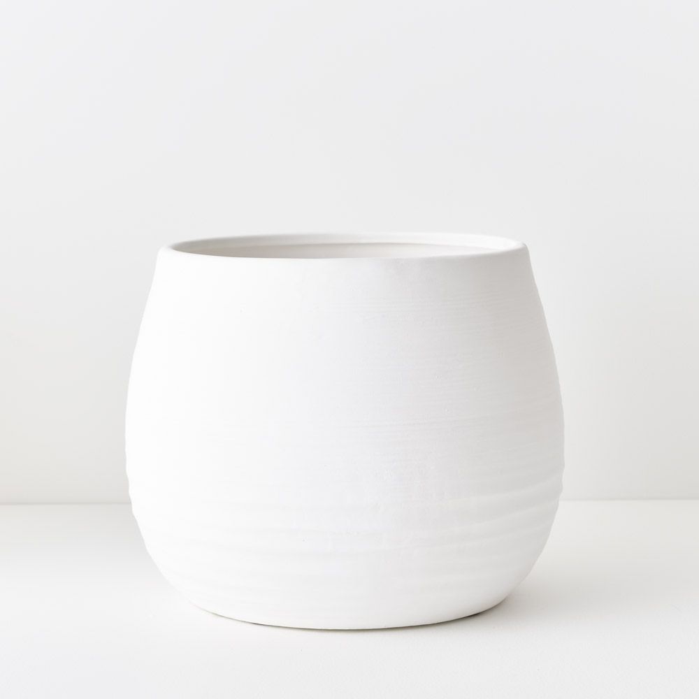 The Takala Planter is a white ceramic piece with a clean, modern aesthetic. Its understated design makes it a versatile choice for styling greenery or as a decorative accent on its own.