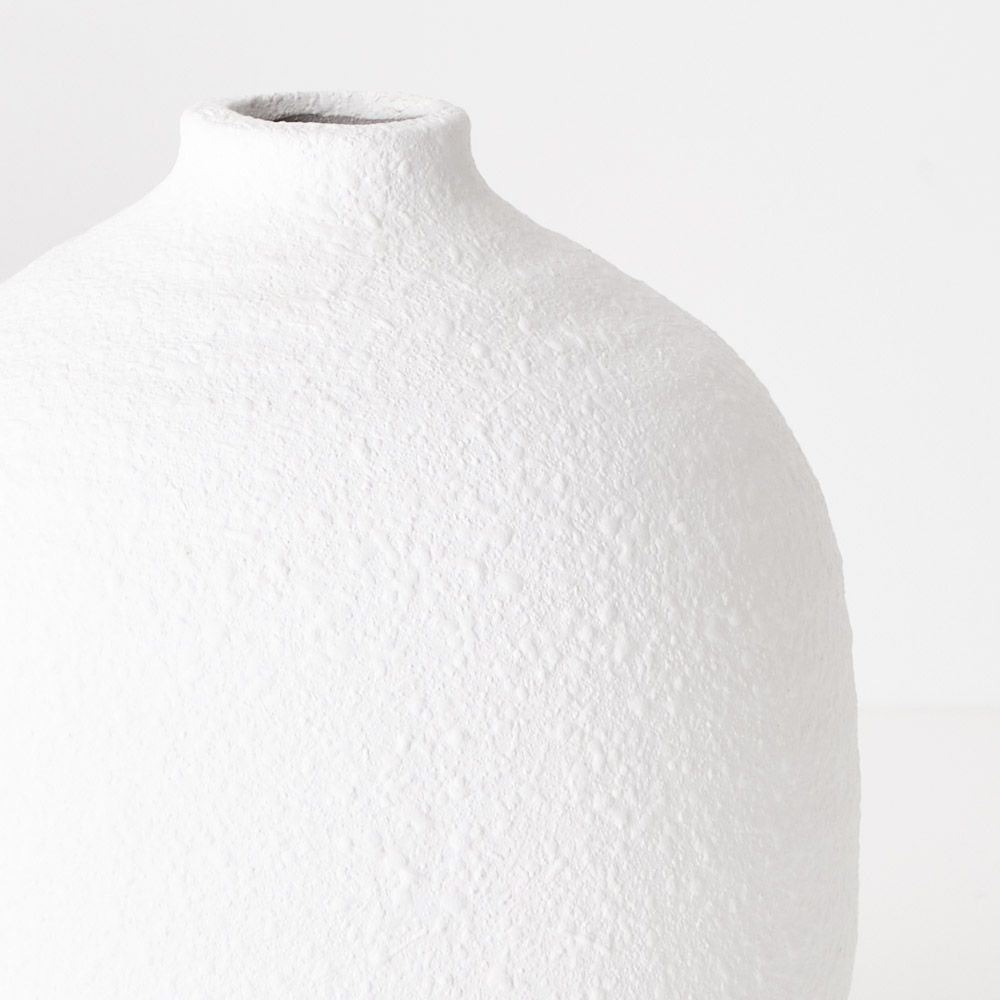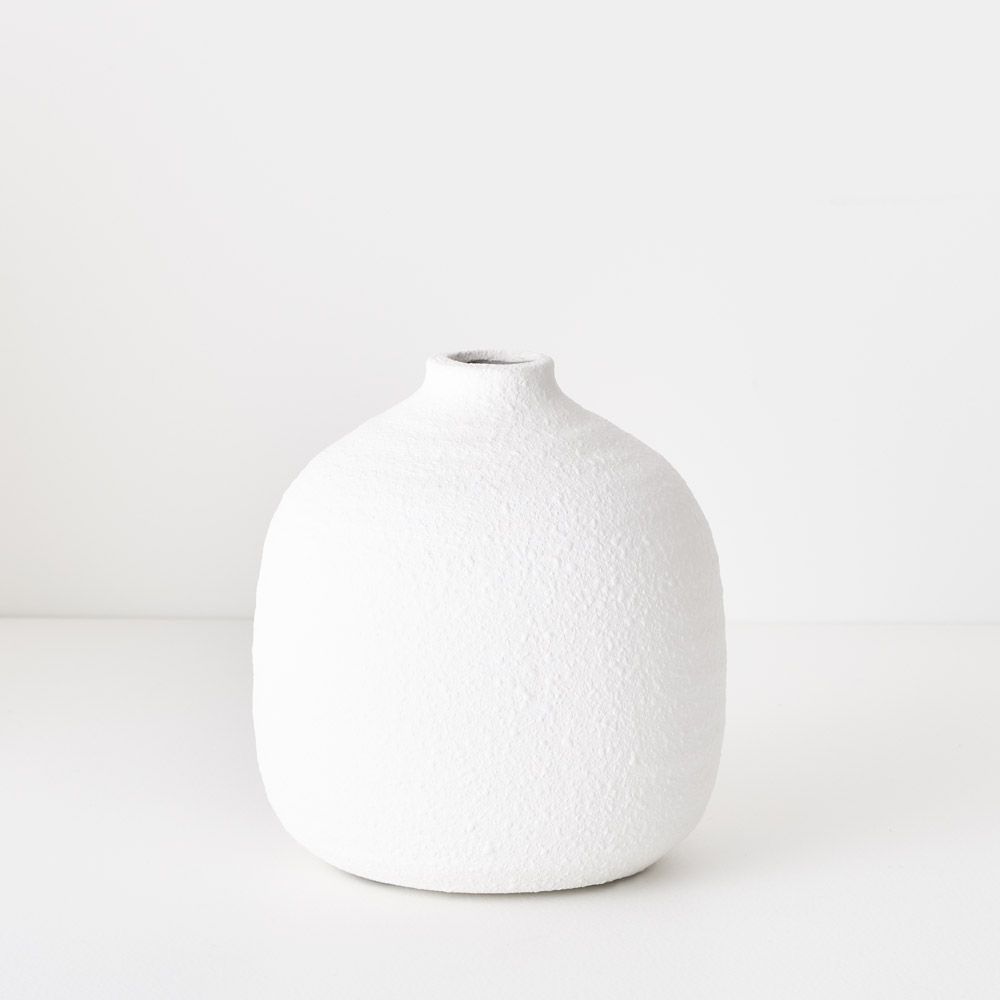 The Bowie Vase is a charming white ceramic piece with a minimalist design, making it an elegant accent for any small space. Its refined simplicity allows it to complement a variety of interiors, whether styled with dried or artificial stems or displayed on its own.