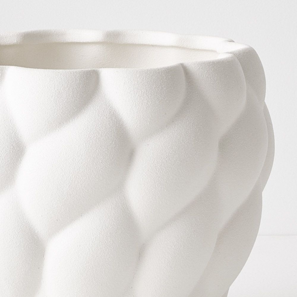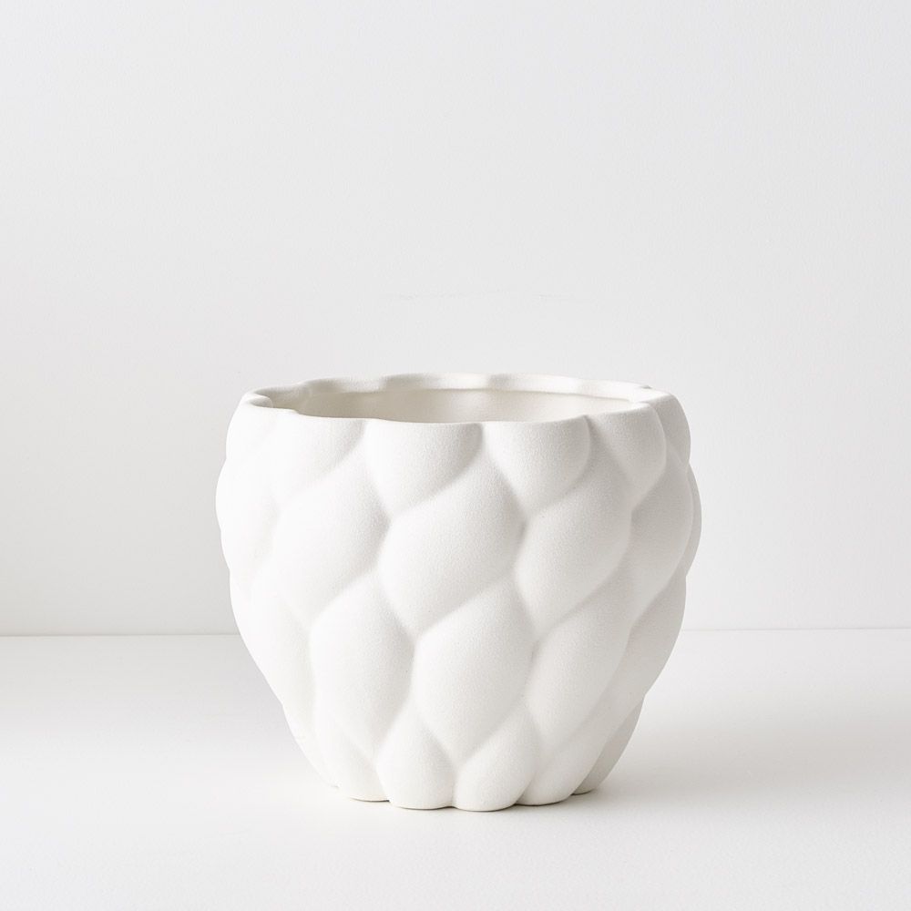The Hope Pot features the same unique, rounded design as its vase counterpart, offering a sculptural yet understated look. With its crisp white finish and compact size, it’s perfect for small artificial plants or succulents. A versatile piece that seamlessly fits into any interior, adding a touch of modern elegance to shelves, coffee tables, or countertops.