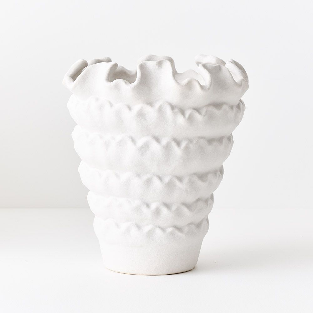 The Zenika Pot is a beautifully glazed ceramic piece featuring delicate frill-like detailing that adds a touch of elegance and texture. Its timeless design makes it a versatile choice for styling with plants, florals, or as a decorative accent on its own.