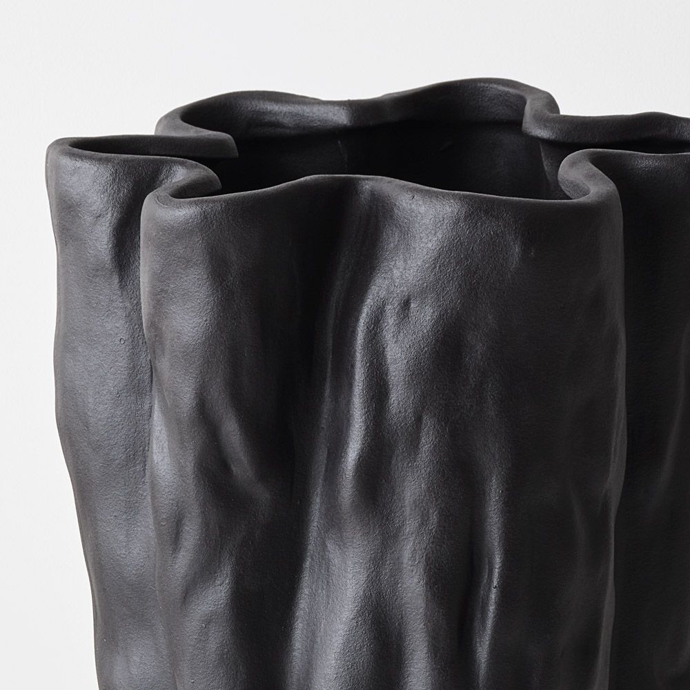 The Henrika pot features a trunk-like shape with intricate detailing, making it a great choice for stems and arrangements. Its wide opening allows for easy styling and versatile displays.