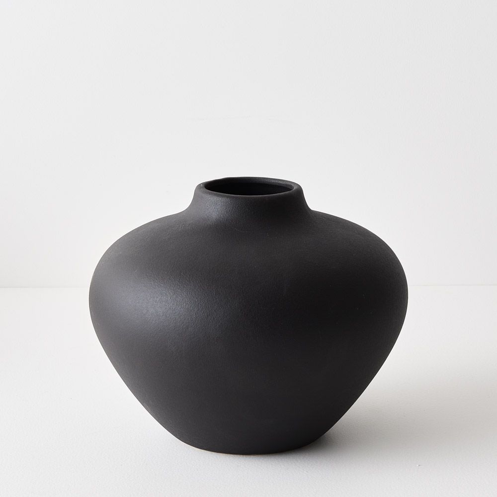 This pot with a matte black finish makes a striking statement on its own or can be styled with twigs or branches for an added touch of natural beauty.