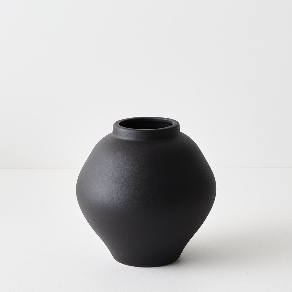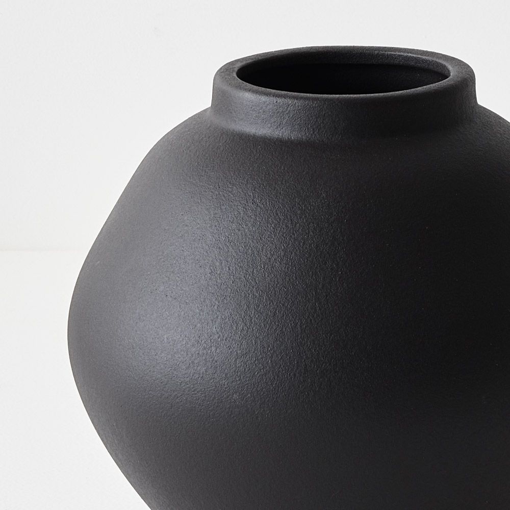 This pot with a matte black finish makes a striking statement on its own or can be styled with twigs or branches for an added touch of natural beauty.