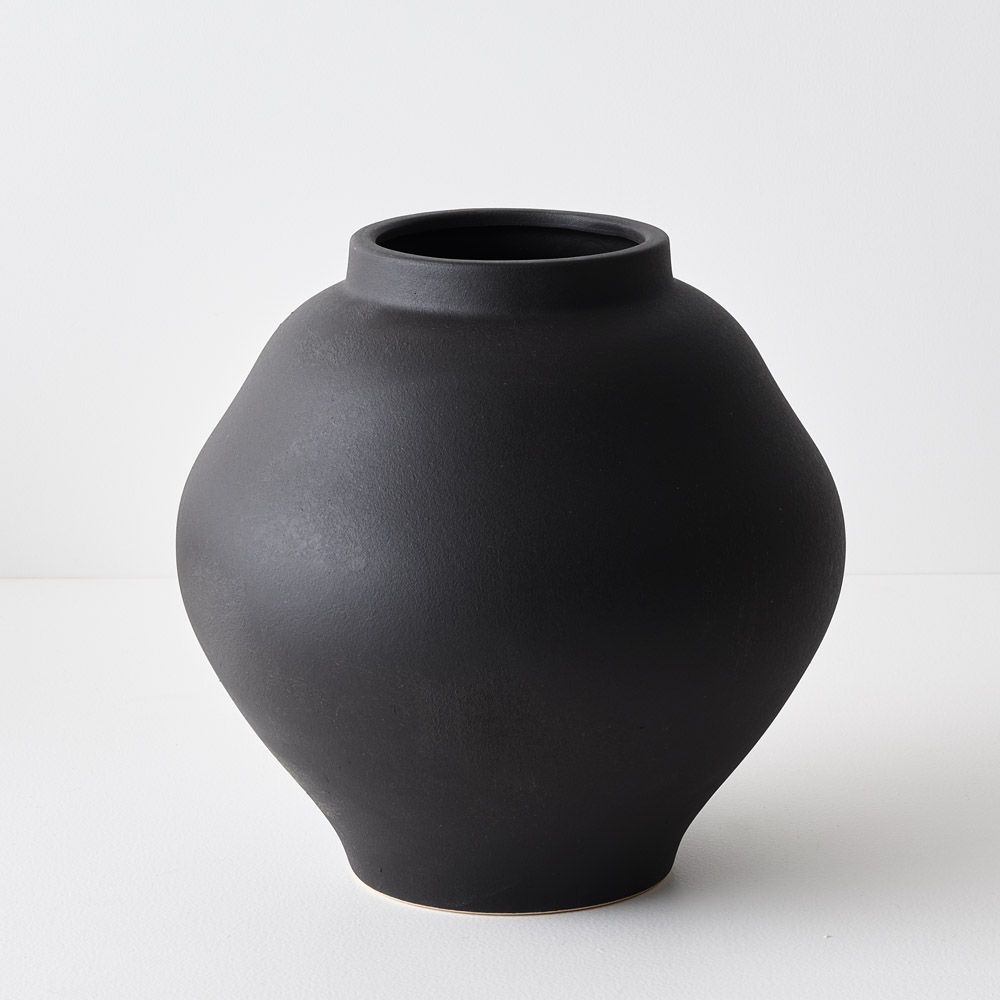 This pot with a matte black finish makes a striking statement on its own or can be styled with twigs or branches for an added touch of natural beauty.
