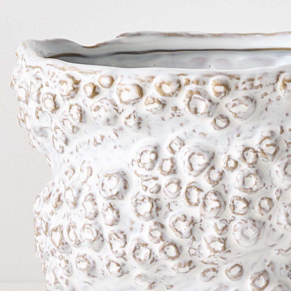 The Coraline Pot features barnacle-like ceramic detailing, and its worn colouring adds character, embracing a much-loved, timeless design perfect for any space. Not guaranteed to hold water.