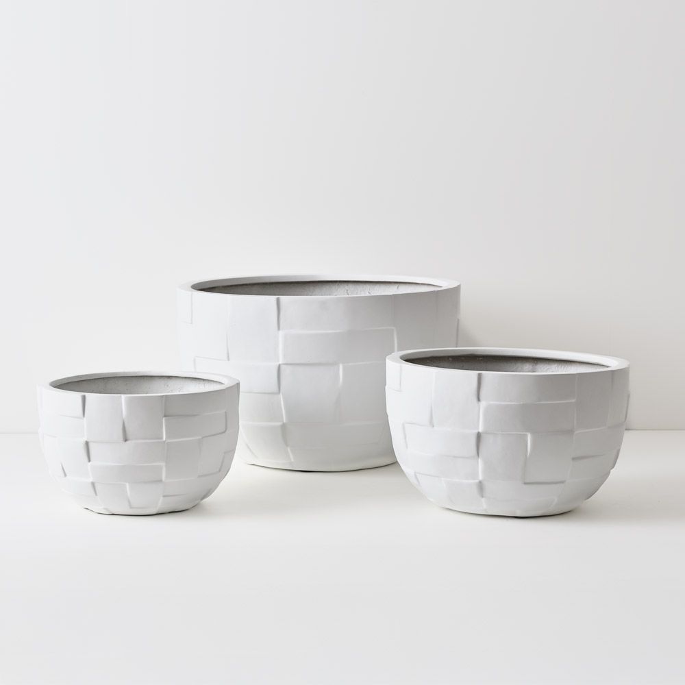 This trio of wide, low pots features a unique abstract woven pattern that adds texture and interest to any setting. Suitable for both indoor and outdoor use, each pot includes drainage holes to keep your plants healthy and thriving. A stylish and practical addition to your plant collection.