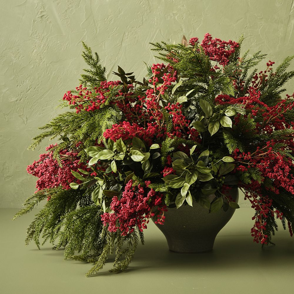 The Berry Pepper Spray brings a vibrant touch with its detailed, textured foliage and natural berry accents. Perfect for adding warmth and interest to modern, rustic, or seasonal arrangements. Enhance your styling with Floral Interiors.