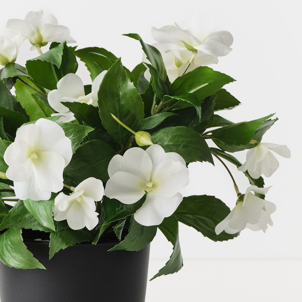 A lush and realistic Impatiens Plant with abundant foliage and delicate blooms. Perfect for brightening up any space with natural texture and fullness.