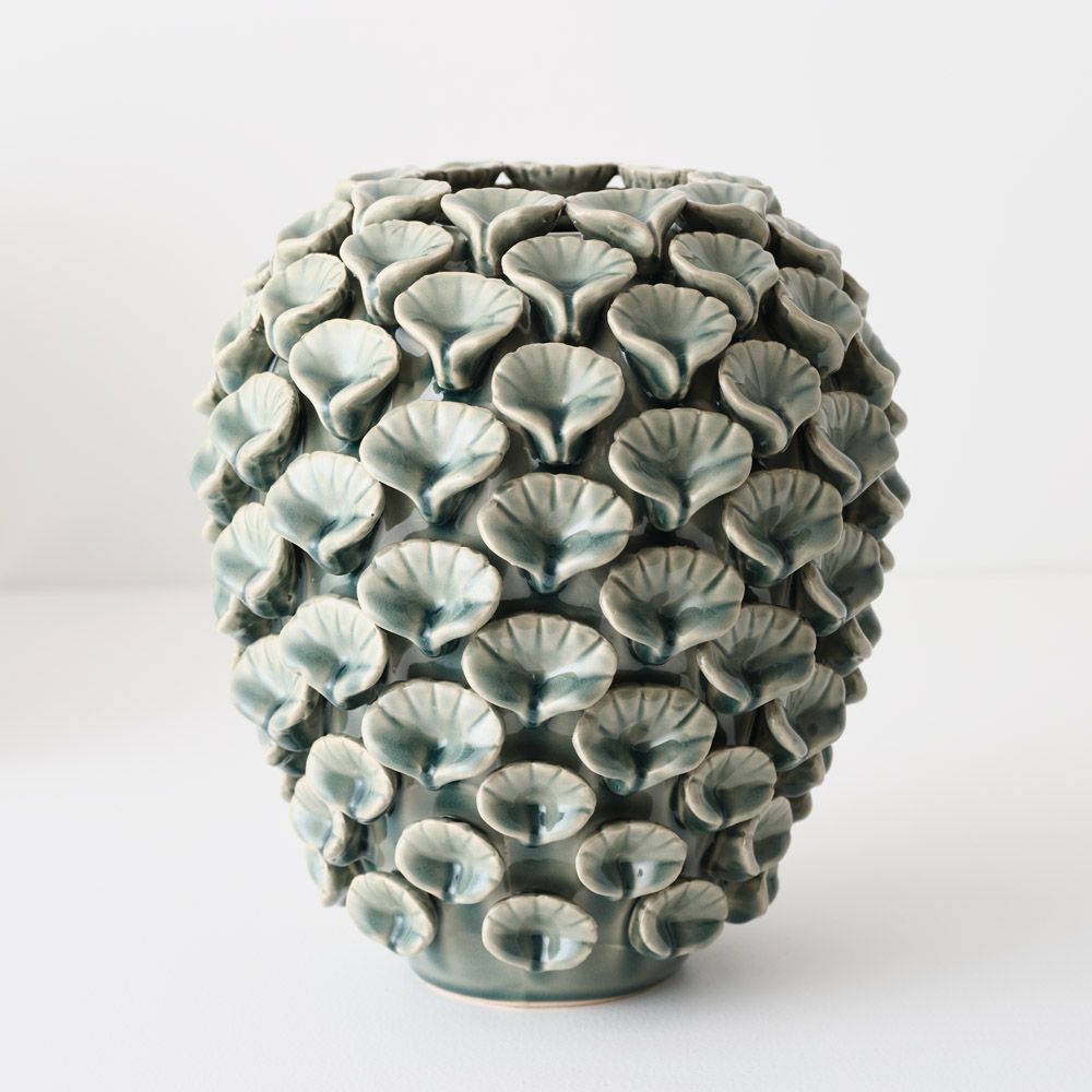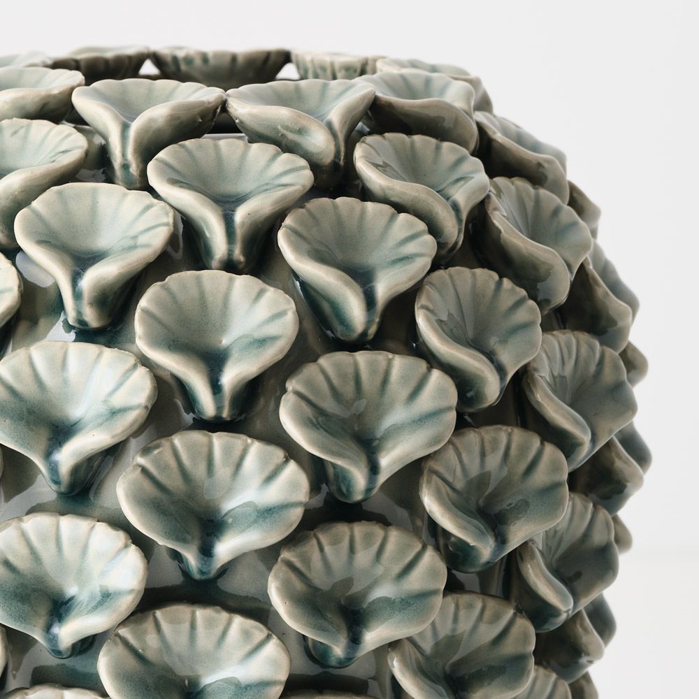 A charming collection of ceramic pots in various sizes, each adorned with delicate shell details. Designed to bring a touch of coastal charm, perfect for Hamptons-inspired or beachside spaces.