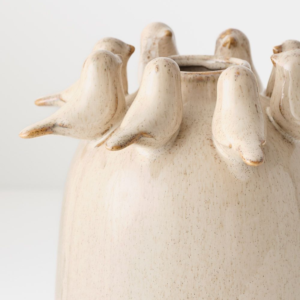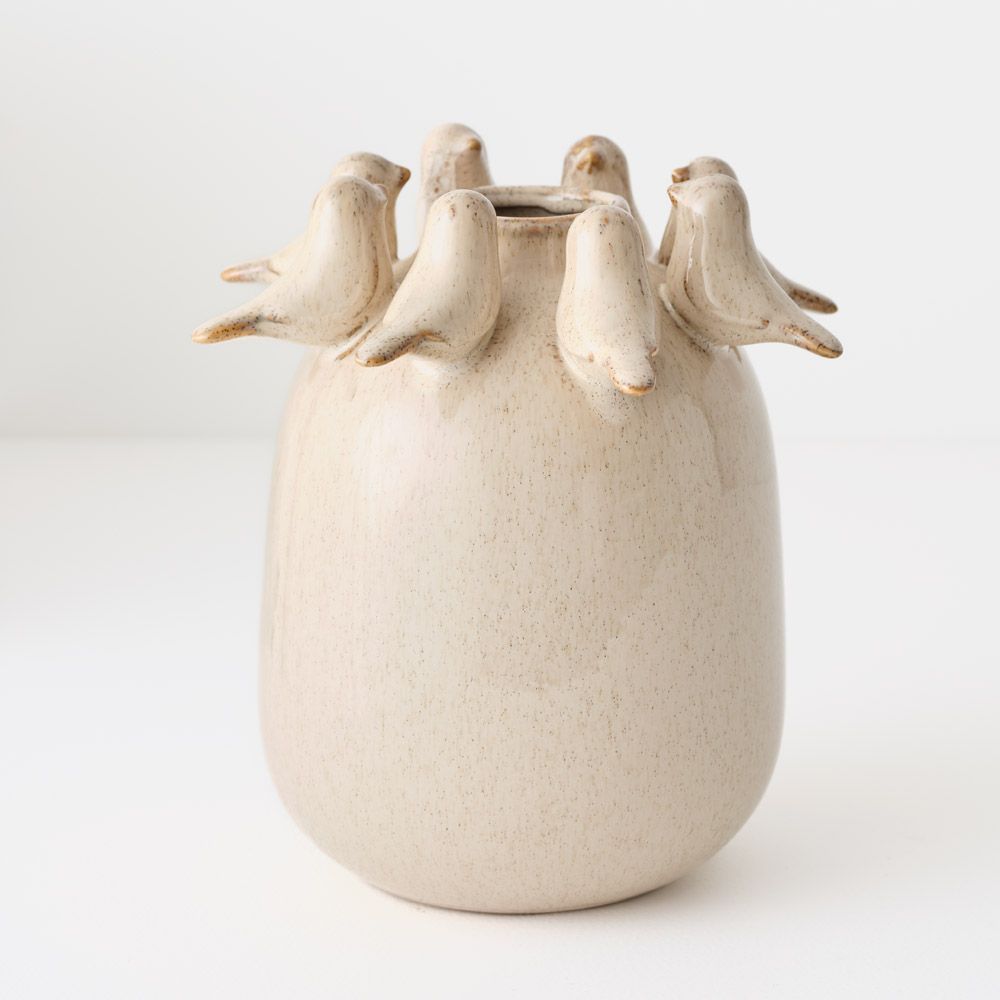A charming small pot featuring a shiny glazed finish and delicate 3D bird details. Lovely on its own or paired with your favourite stem.