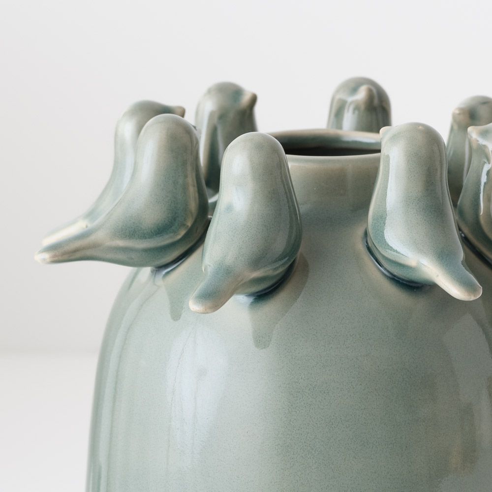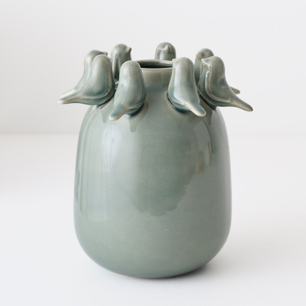 A charming small pot featuring a shiny glazed finish and delicate 3D bird details. Lovely on its own or paired with your favourite stem.
